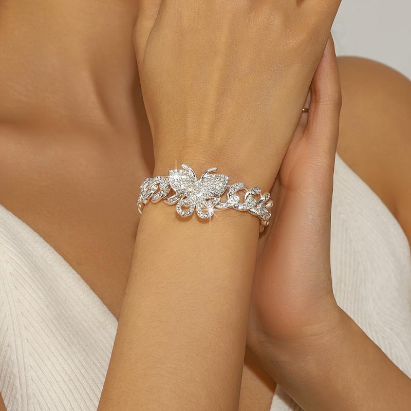 Elevate your style with this stunning butterfly bracelet made of zinc alloy, perfect for weddings and everyday wear.