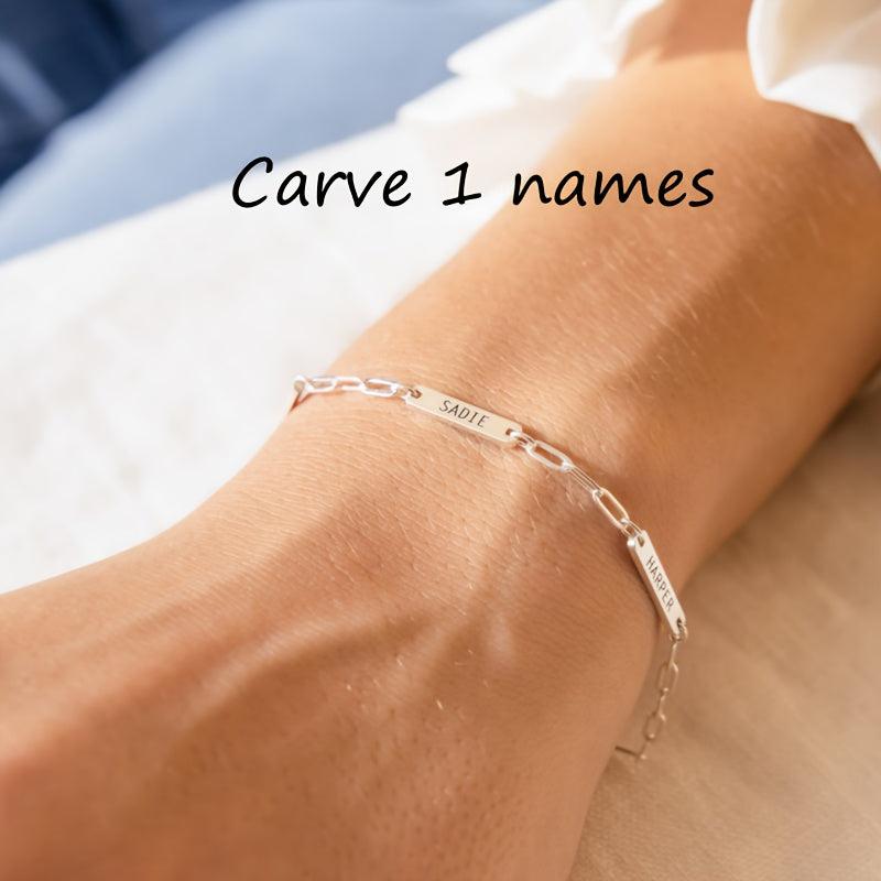 Personalize your style with this minimalist custom name bracelet featuring a paper clip chain design. Crafted from durable stainless steel, this bracelet can be engraved with up to 3 names for a unique touch.