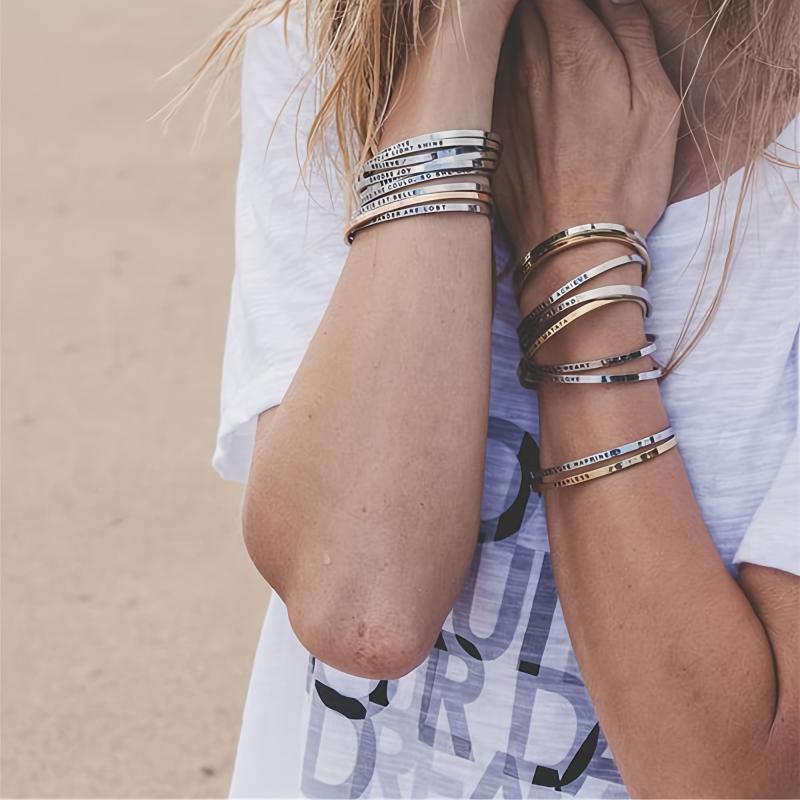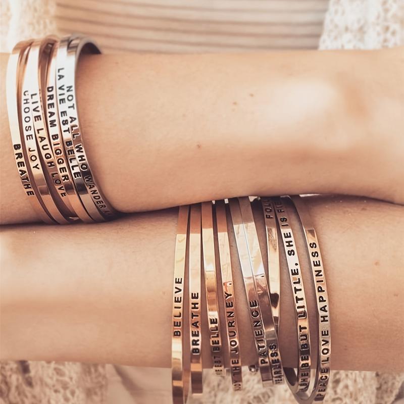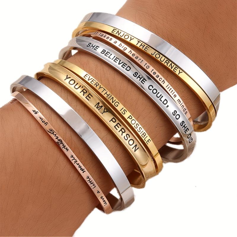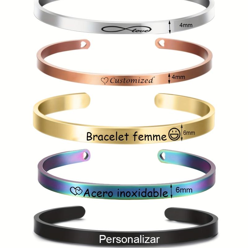 This chic cuff bracelet can be customized with a name or special message, making it a perfect gift for mothers and loved ones. Crafted with care and attention to detail.