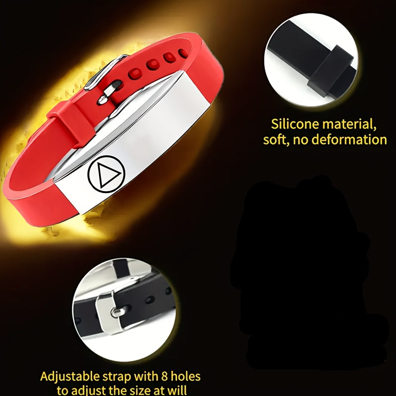 Get a personalized silicone bracelet with custom ID featuring your name, initials, date, and phone number for recovery purposes.