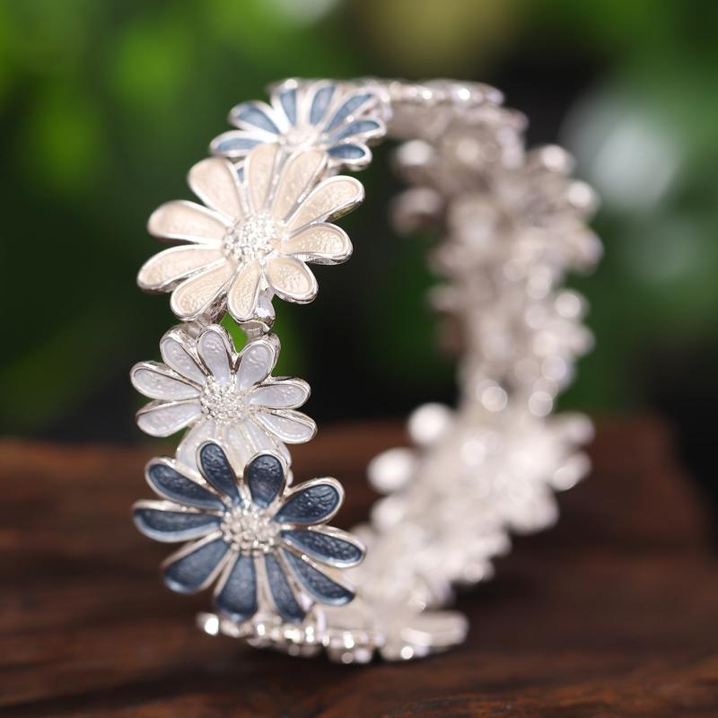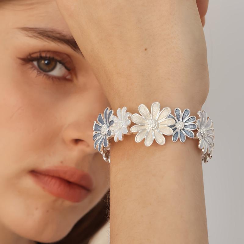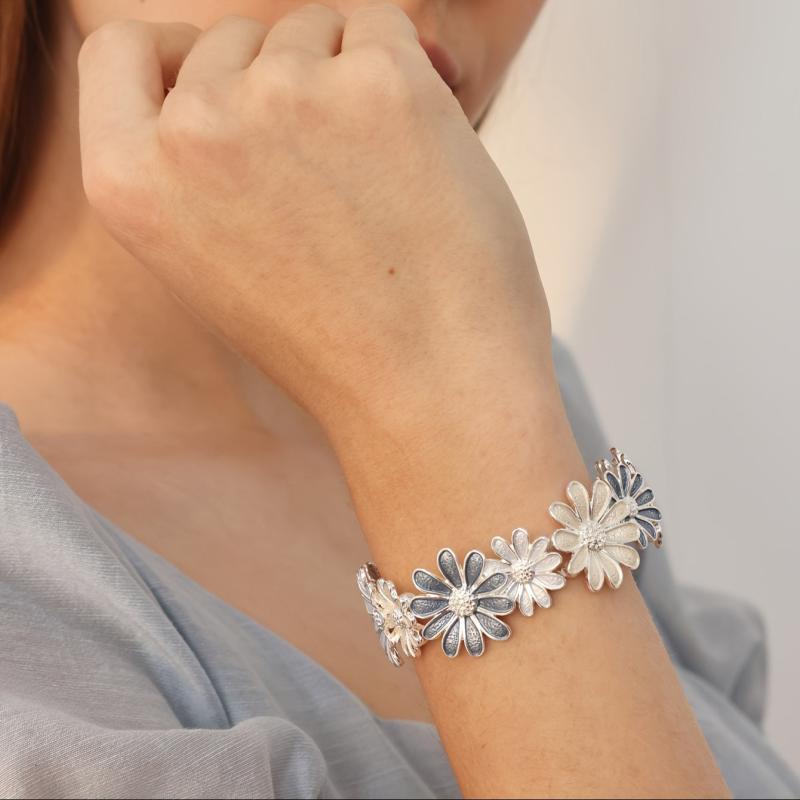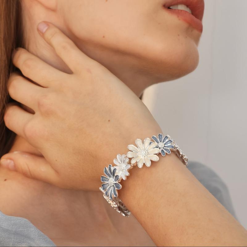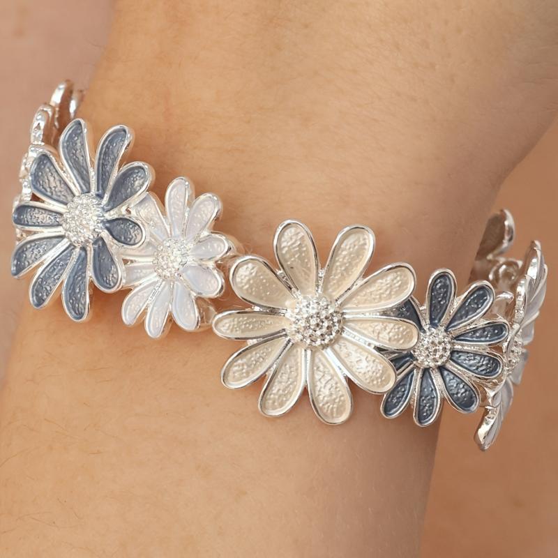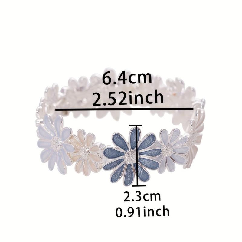 Add a touch of bohemian charm to your look with this delightful stretch bracelet featuring enamel daisy flowers. Perfect for everyday wear or special occasions, it makes a lovely gift for her.