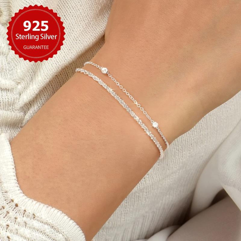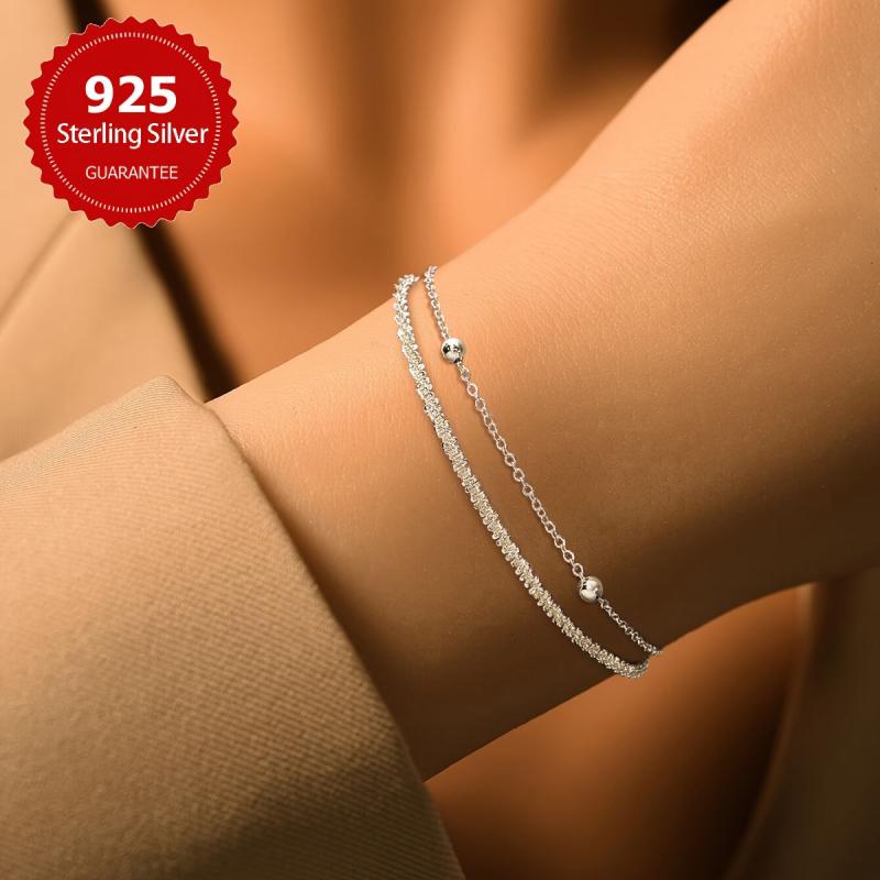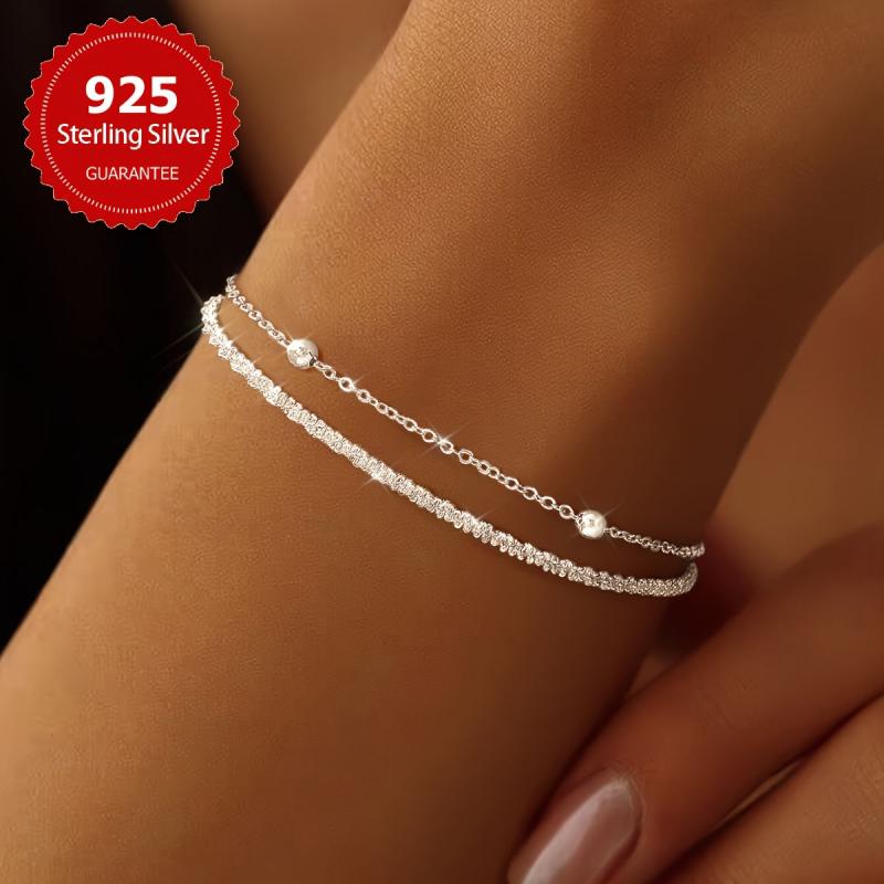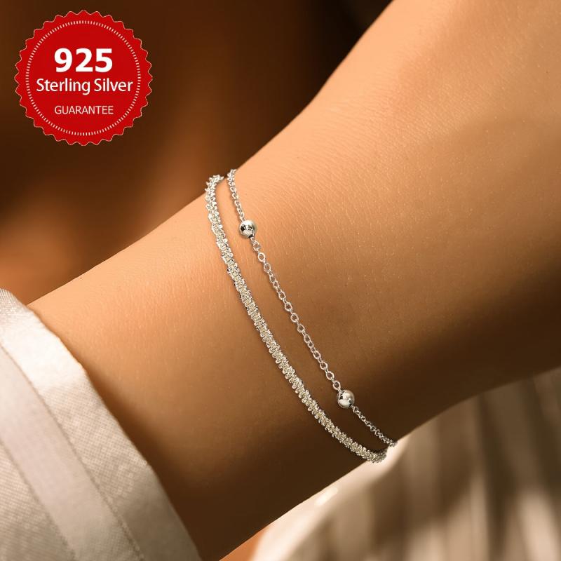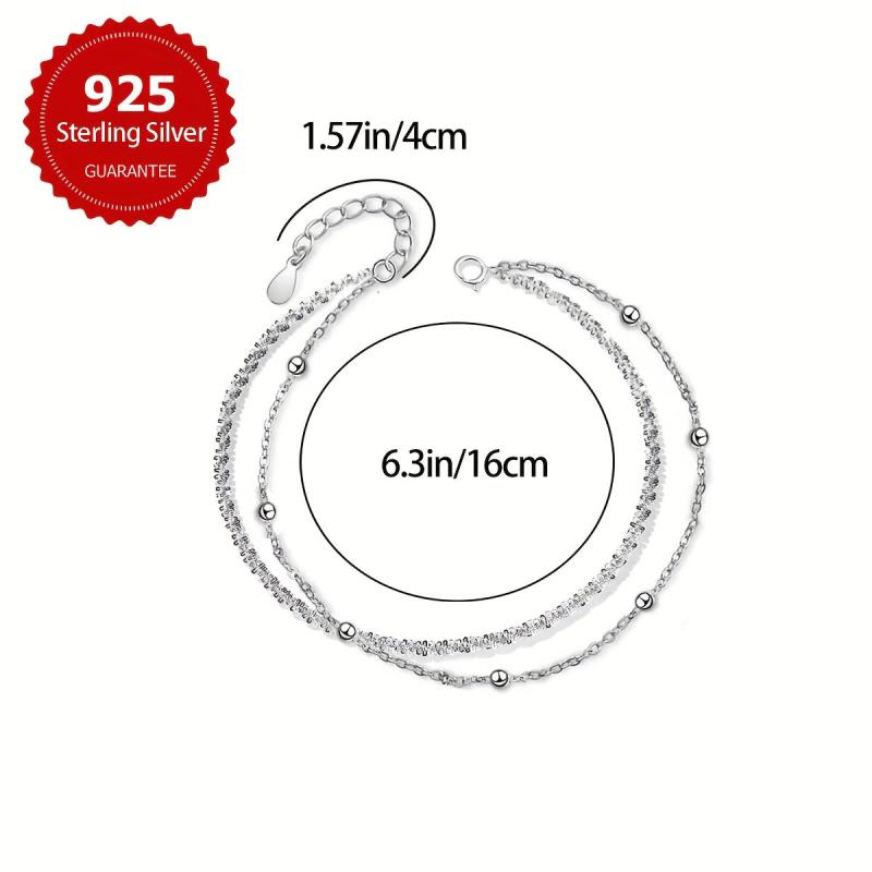 This double layer beaded bracelet is made of high-quality S925 sterling silver, adorned with sparkling cubic zirconia. It's a fashionable piece of jewelry perfect for Valentine's Day or a birthday gift.