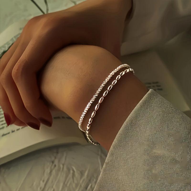 Elevate your style with this double layer bracelet featuring a sparkling design. Perfect for daily wear or vacation outfits, this accessory is ideal for all seasons.