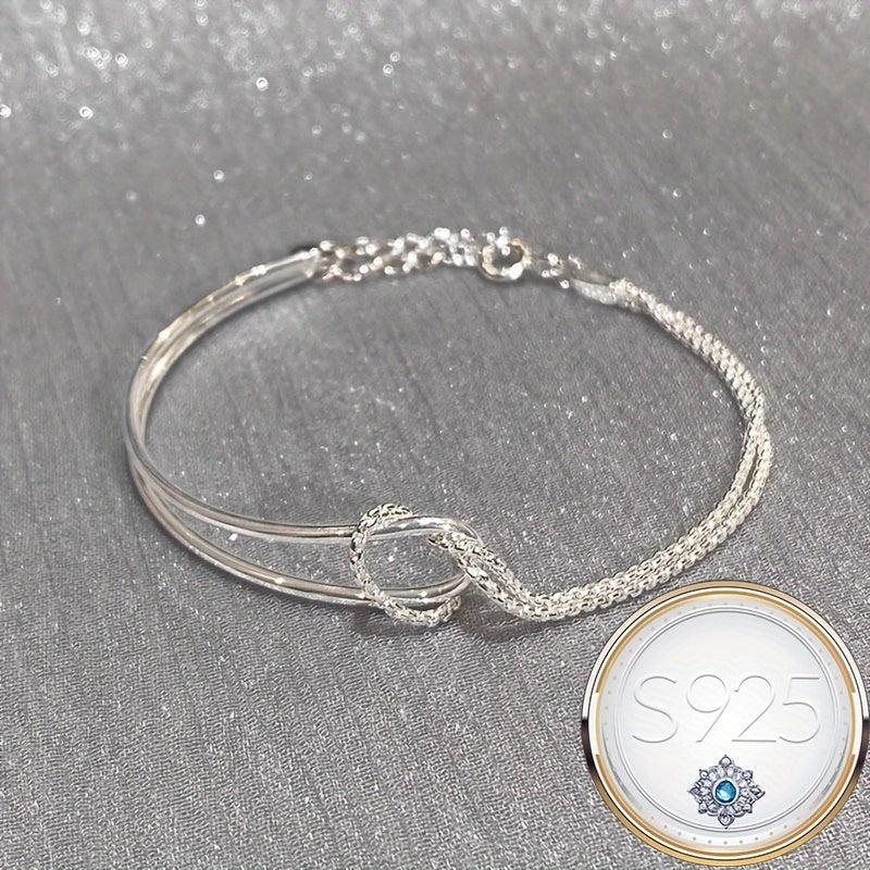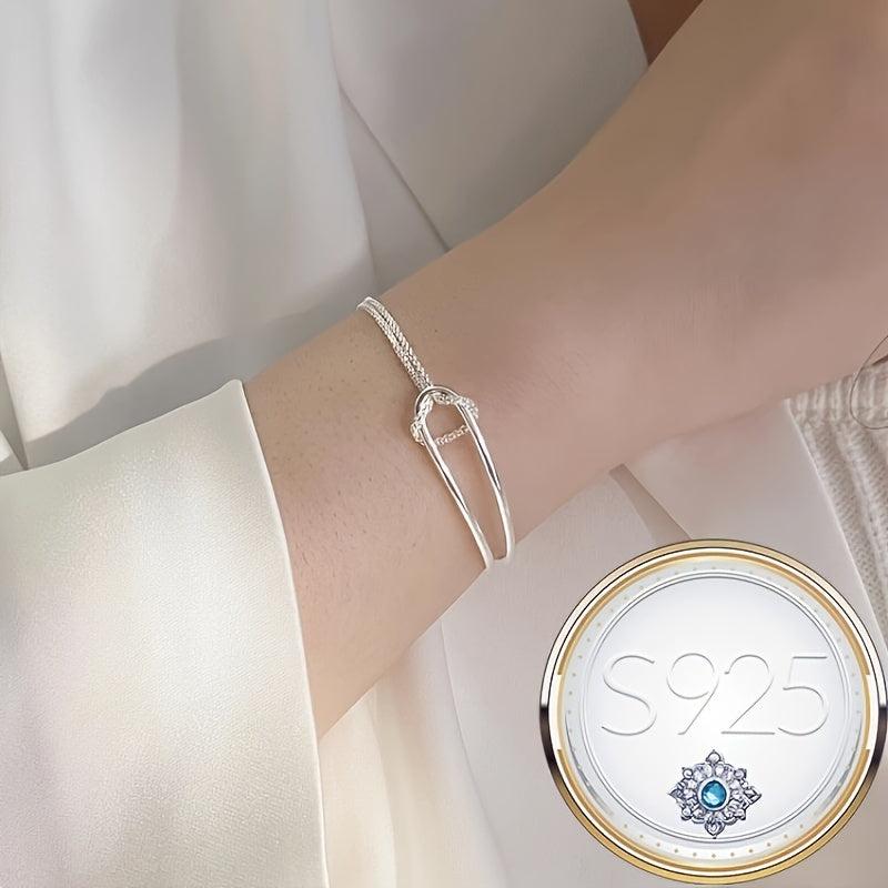 This double layer knot splicing bracelet features a minimalist style with a rope knot design. It creates a half bracelet look that adds a touch of elegance to any outfit.