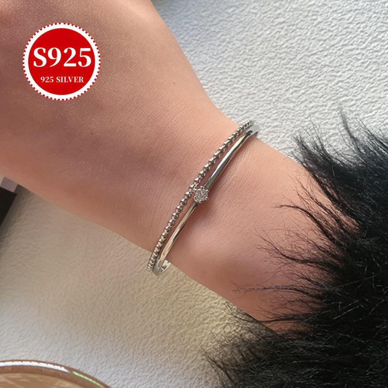 This fashionable bracelet features a double layer design with round beads, making it a perfect accessory for those with sensitive skin. The elegant style adds a touch of personality to any outfit.