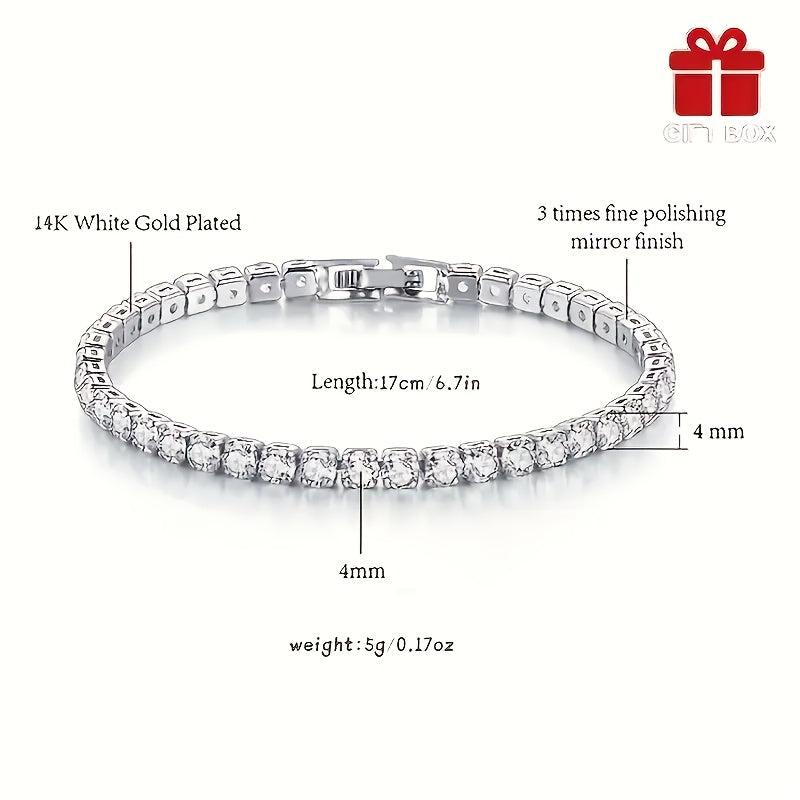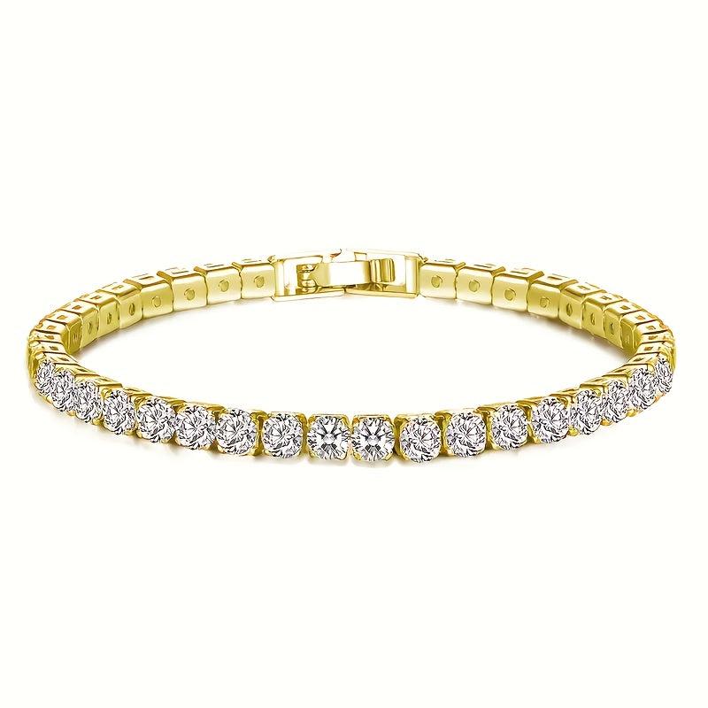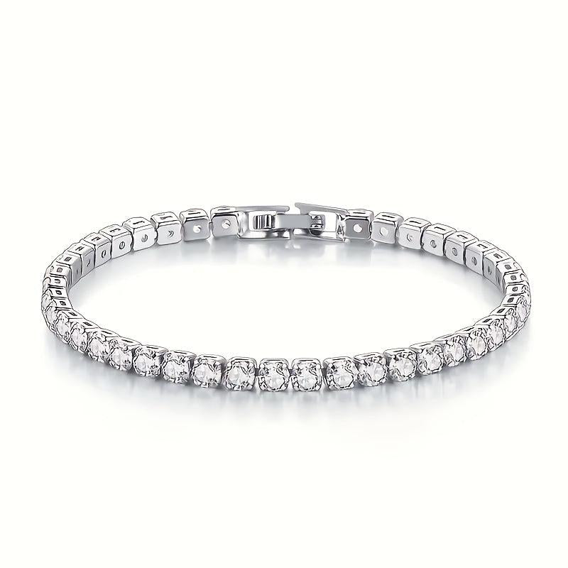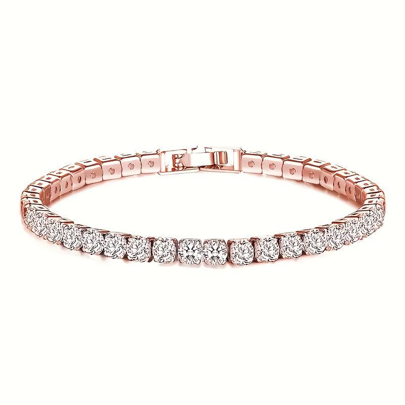 This stylish tennis bracelet features synthetic zirconia stones set in copper, making it a perfect gift for Valentine's Day or Mother's Day. The sparkling design adds a touch of glam to any outfit.