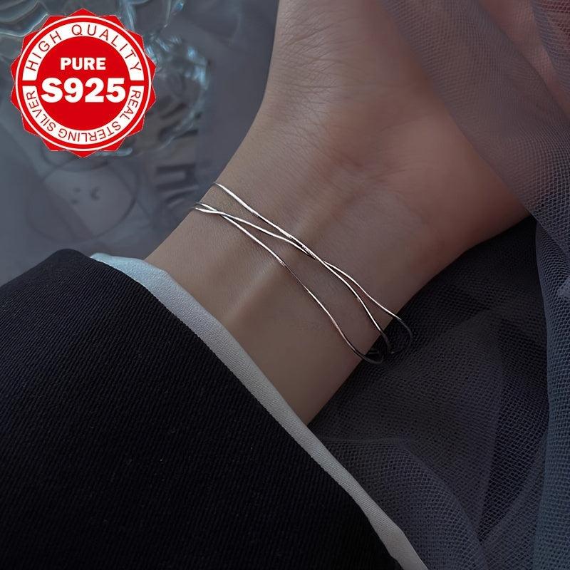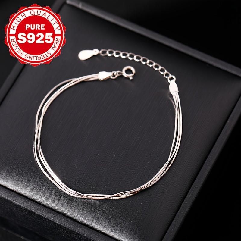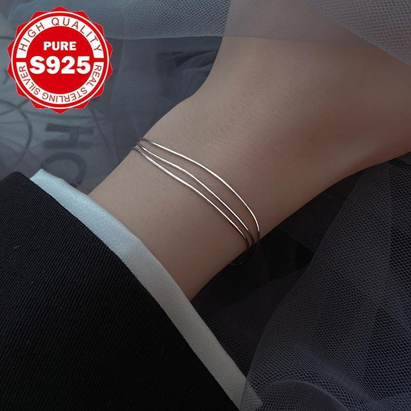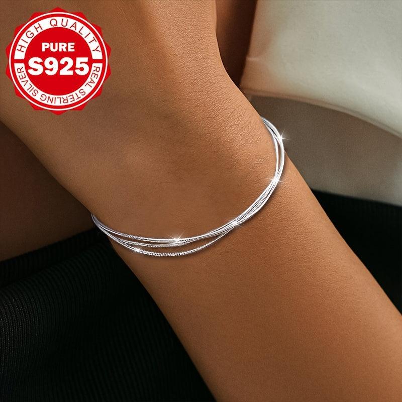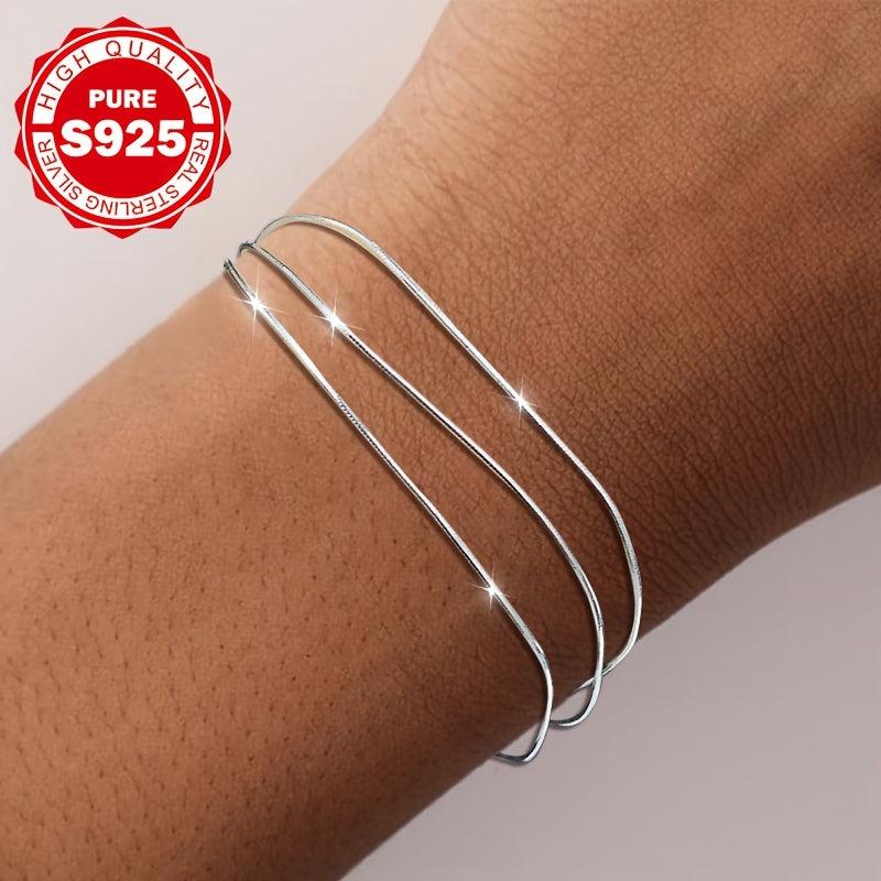This stunning bracelet is crafted from hypoallergenic S925 sterling silver and features a three-ring snake bone design that exudes elegance. It weighs 2.66g and makes a perfect holiday gift for friends.