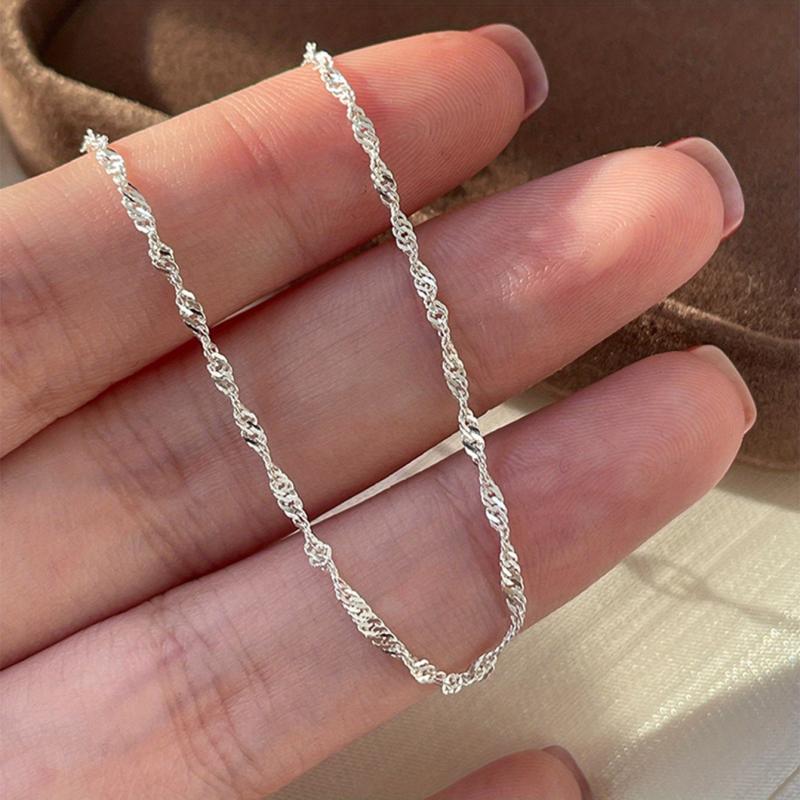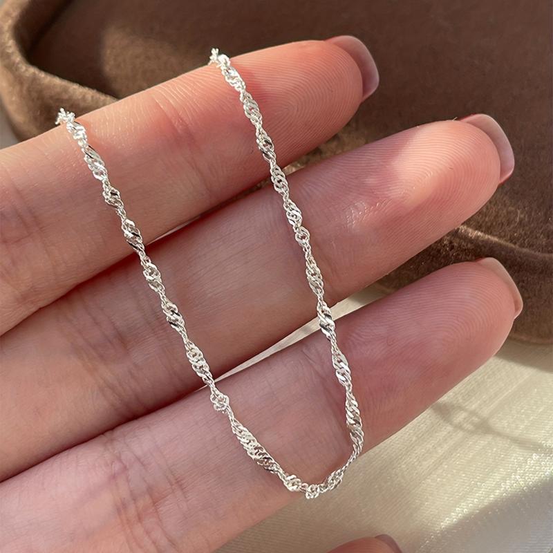This Japanese-inspired water wave chain is a versatile accessory that exudes a sense of high-end fashion. Its sleek design and delicate details make it perfect for any occasion.