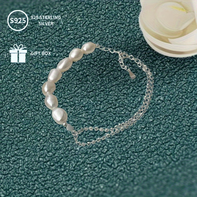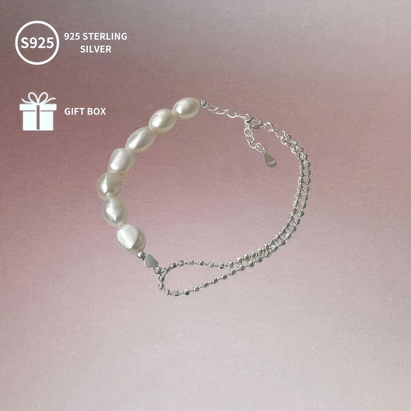 This bracelet features a freshwater pearl heart charm on a 925 sterling silver chain, creating an ethereal glow that is perfect for daily wear.