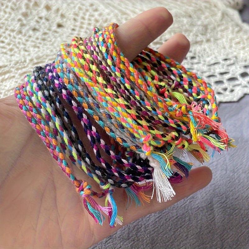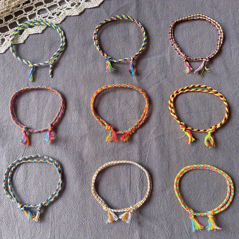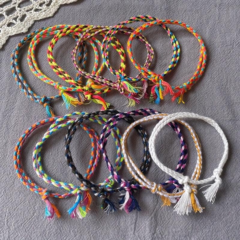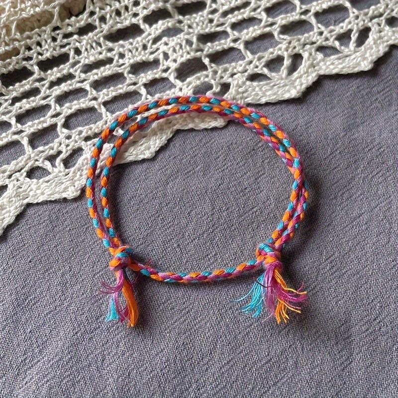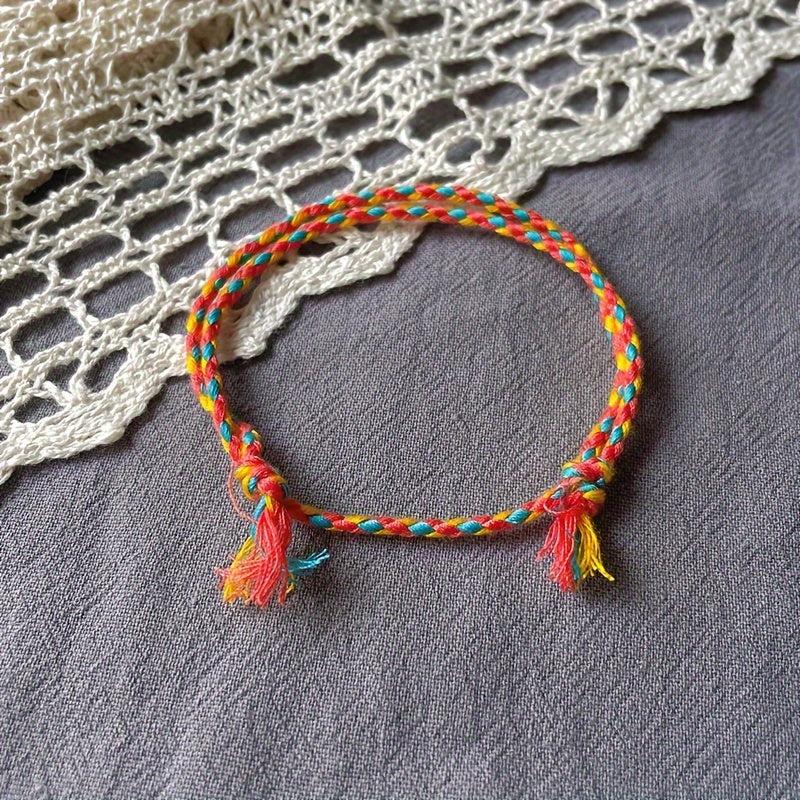 This versatile wristband features a stylish ethnic design that is perfect for daily wear or travel. Each wristband is hand woven with four strands of colorful lines, creating a unique and fashionable accessory.