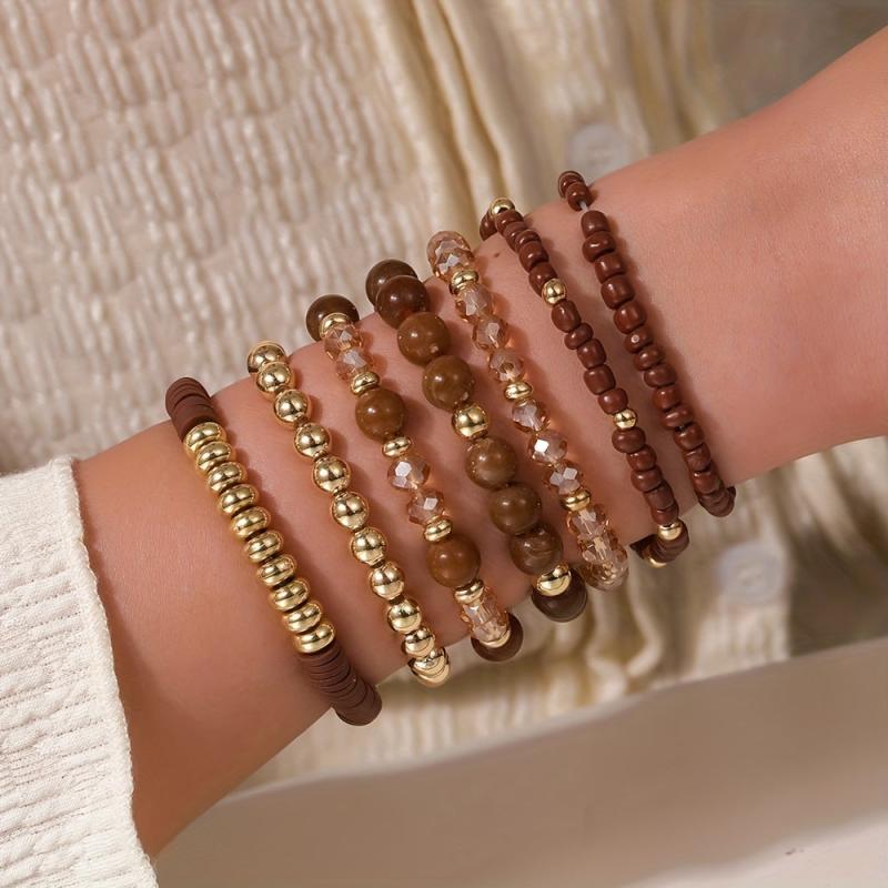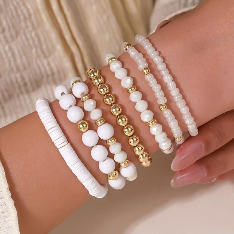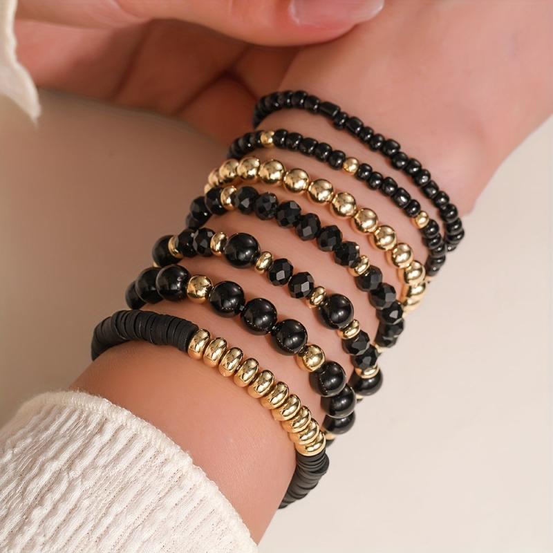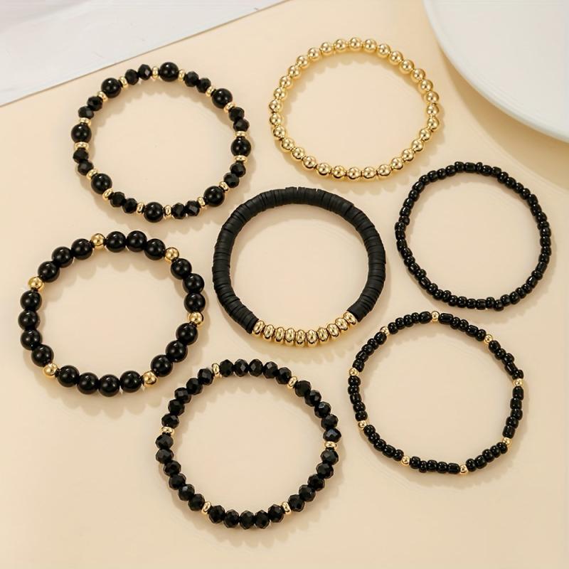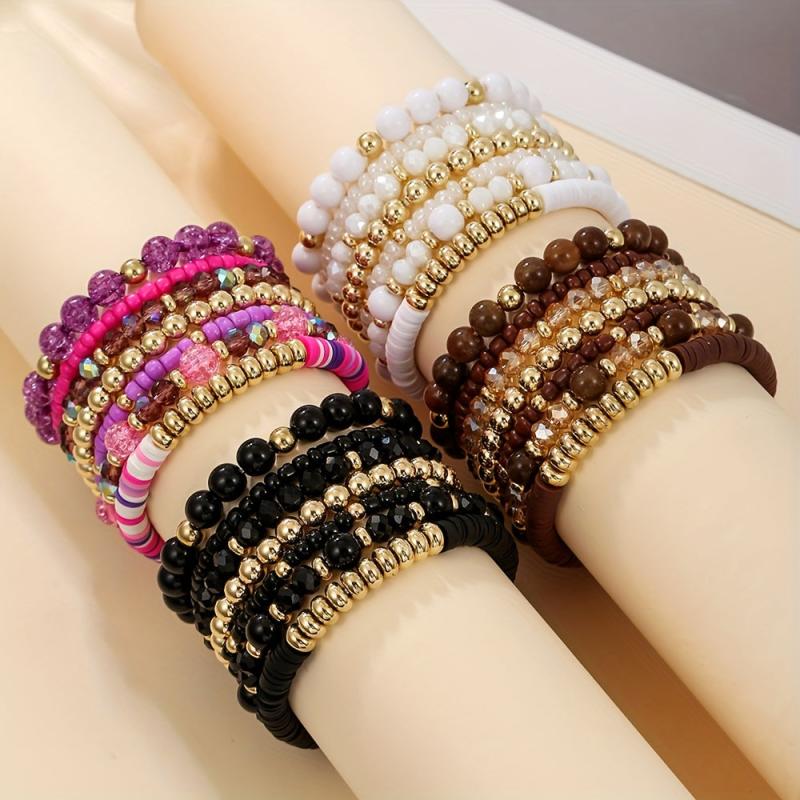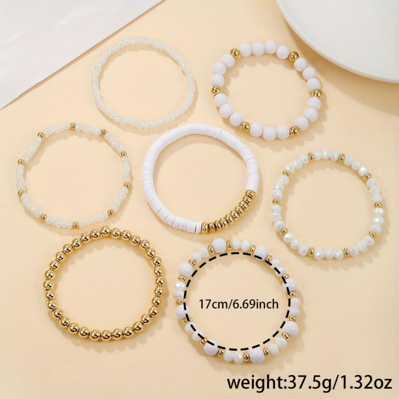 This set features 7pcs of acrylic CCB beaded layered bracelets suitable for daily wear, parties, dances, and gifting.