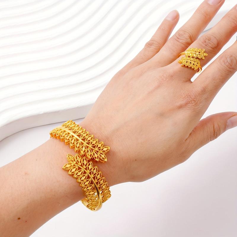 Add a touch of elegance to your outfit with this open ended bracelet featuring carved hollow design. Perfect holiday gift for women.