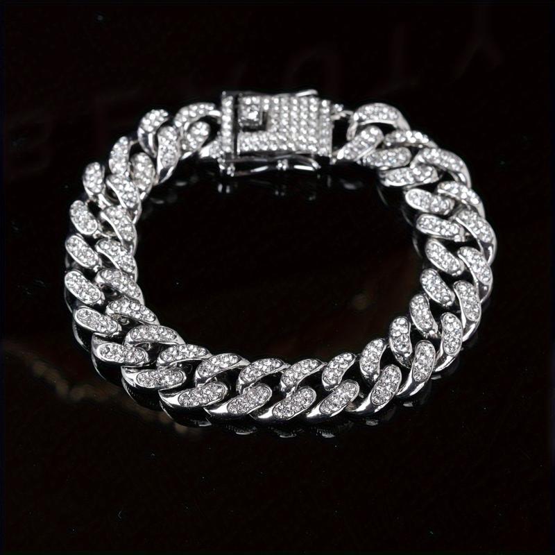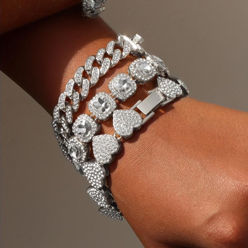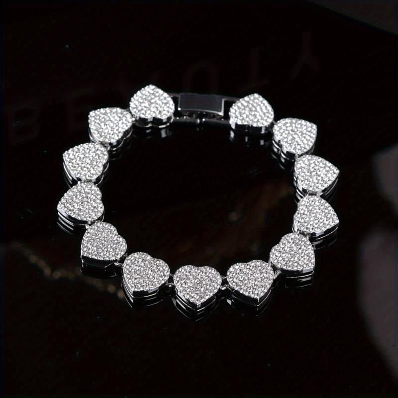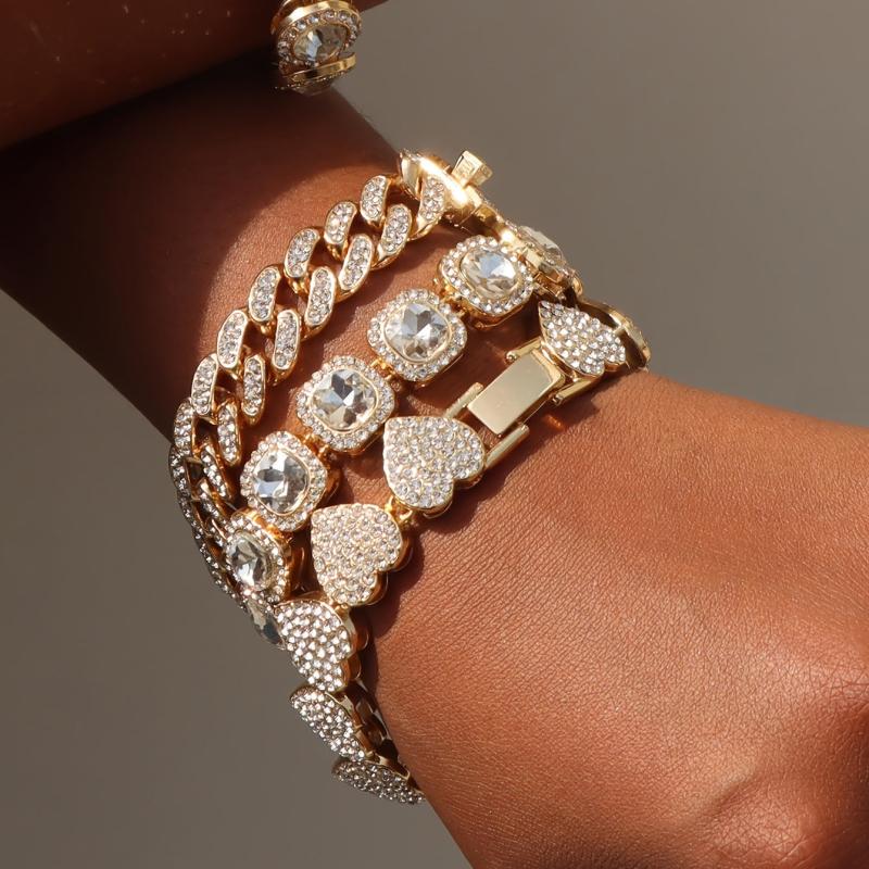 Get a touch of street hip hop style with this unisex couple bracelet featuring full rhinestones and a golden heart chain. Perfect for men and women.