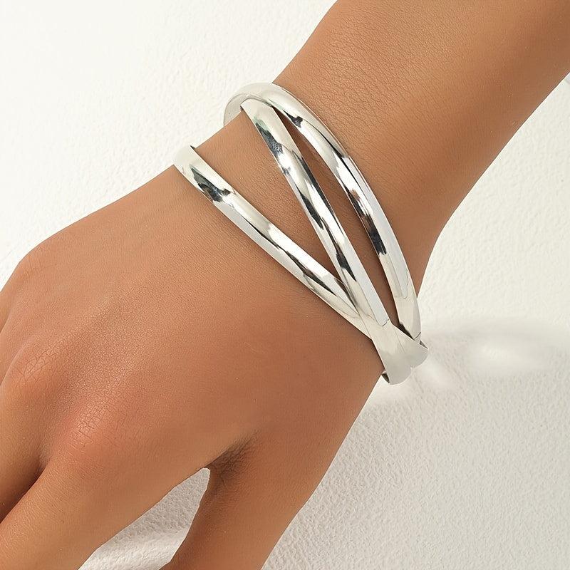 This stylish bracelet features three layers of interlocking rings, perfect for daily wear or special occasions like birthdays, holidays, engagements, or weddings.
