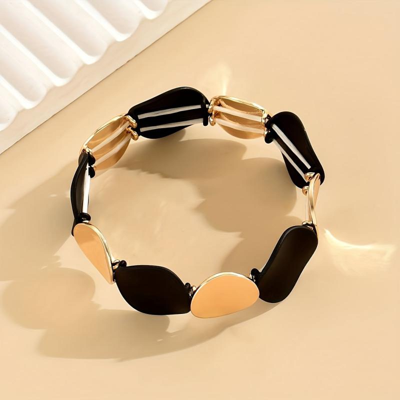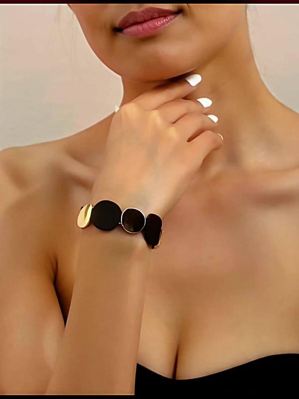 This round metal bracelet is a fusion of European and American styles, featuring a golden block design. It exudes elegance and sophistication.
