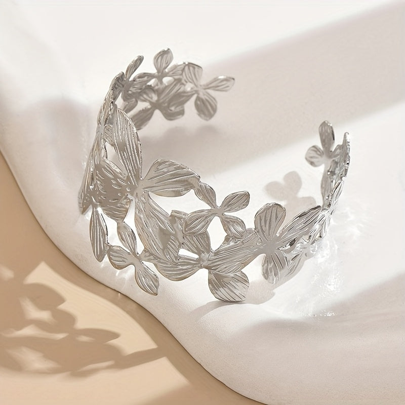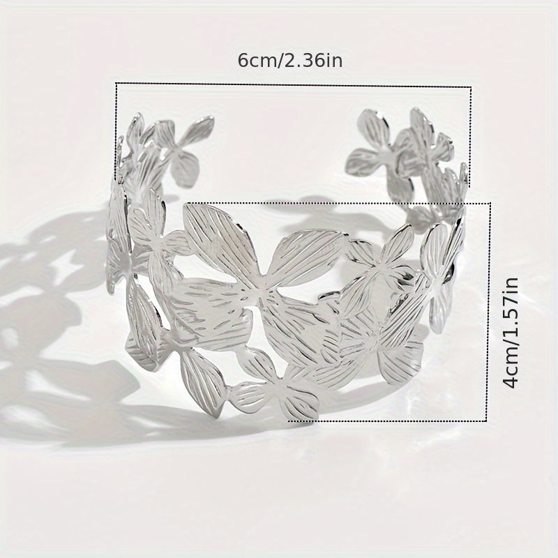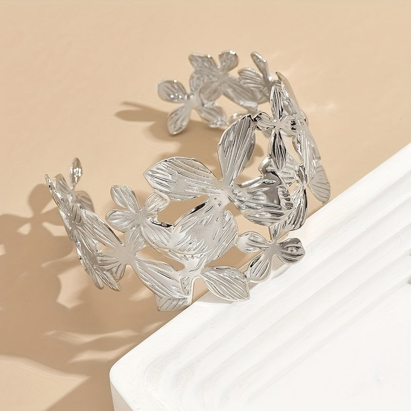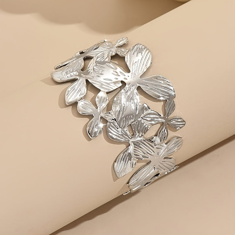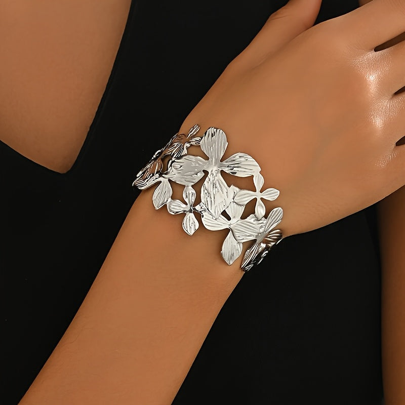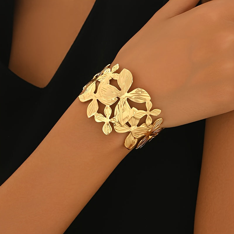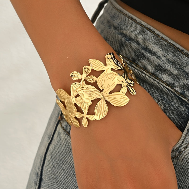 Elegant and intricate wide leaf bracelet designed for women, adding a touch of extravagance to any outfit.