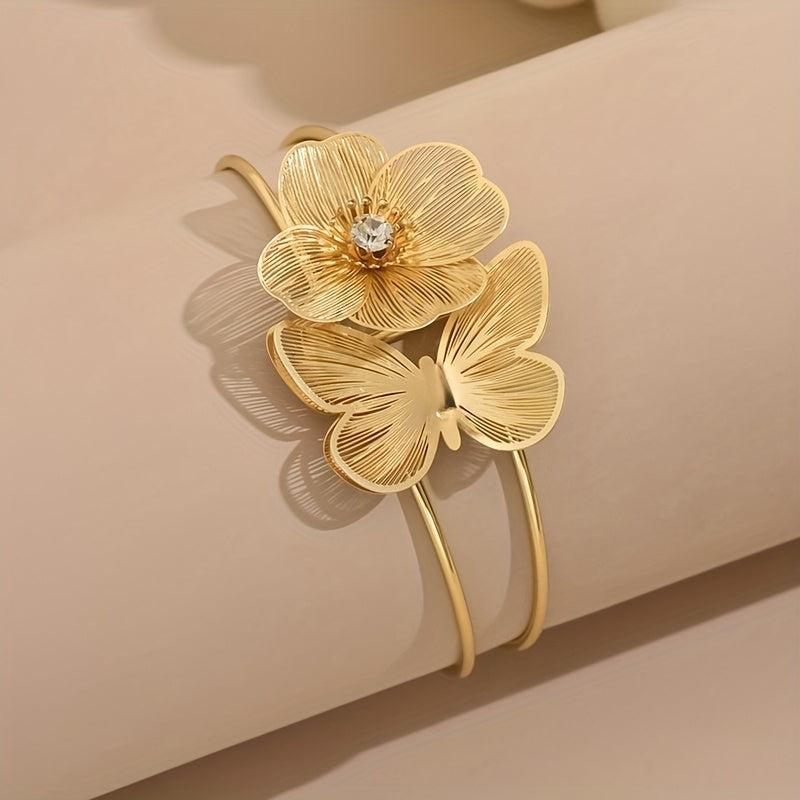Add a touch of elegance to your outfit with this stylish and sexy iron flower butterfly bangle. Perfect for all seasons and occasions.