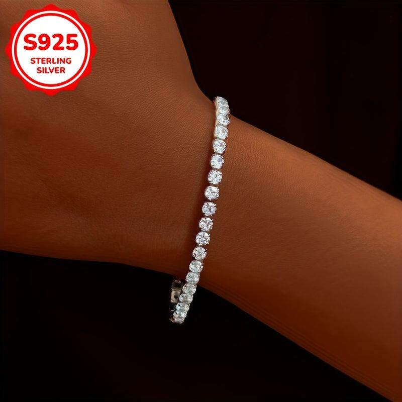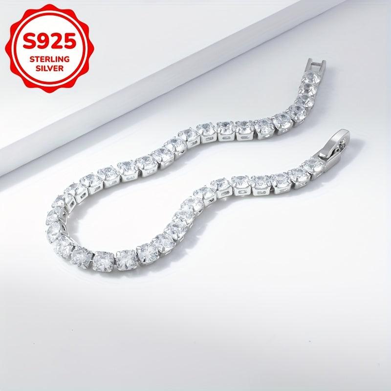 Enhance your style with this stunning bracelet and necklace set featuring Synthetic Zirconia inlays. Made of 925 Silvery, it weighs 3.5g and is perfect for daily wear, gatherings, festivals, and banquets.