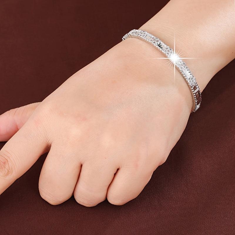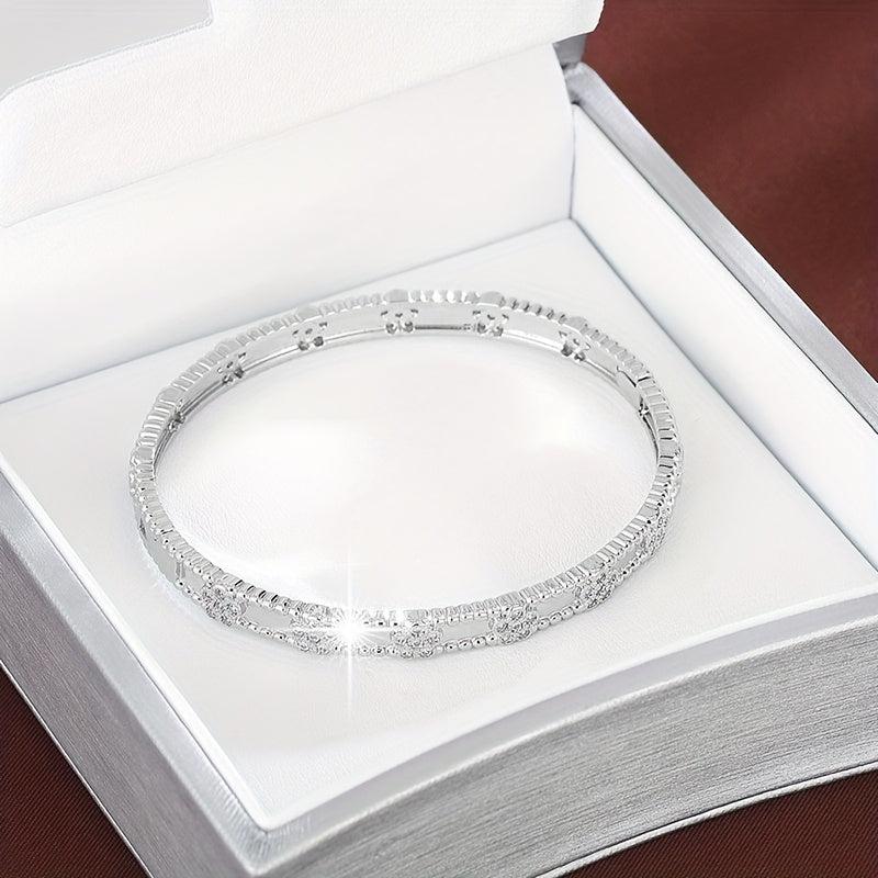 Elegant bracelet featuring a floral design with cubic zirconia inlay, crafted in golden tone copper. Perfect for daily wear or special occasions.