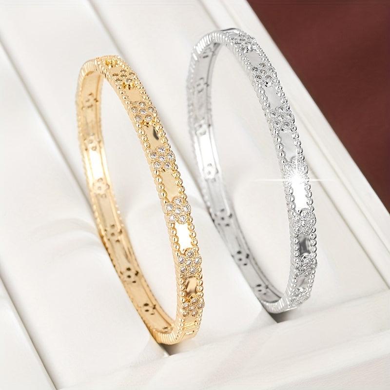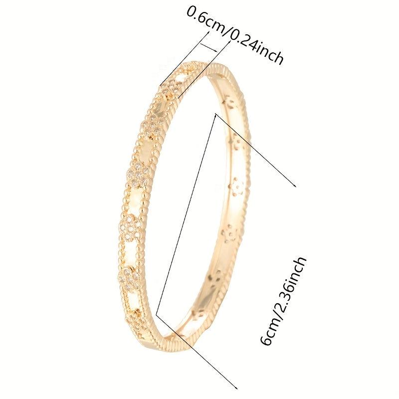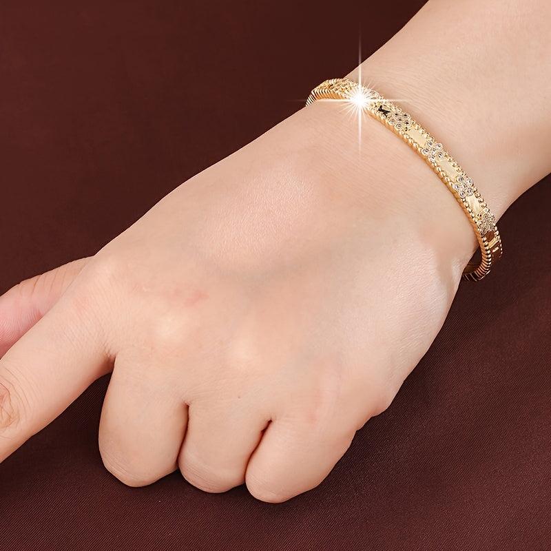 Floral Ladies Bracelet with Cubic Zirconia Inlay Golden Tone Copper Bangle