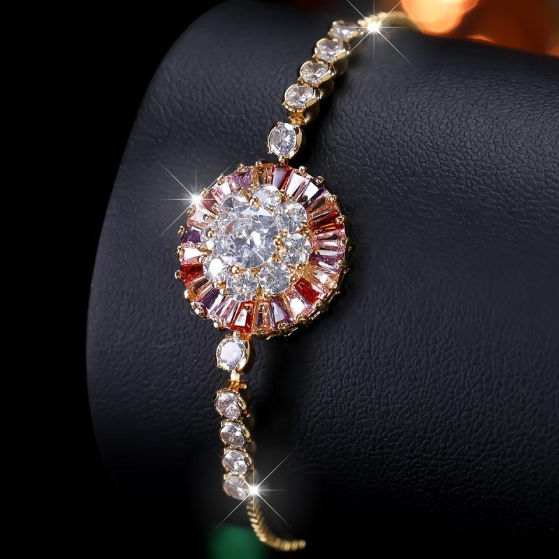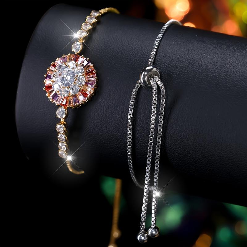 This stunning flower bracelet features sparkling synthetic zirconia on a classic copper base, making it perfect for weddings and parties. The adjustable chain ensures a comfortable fit, and its timeless design makes it suitable for all seasons.