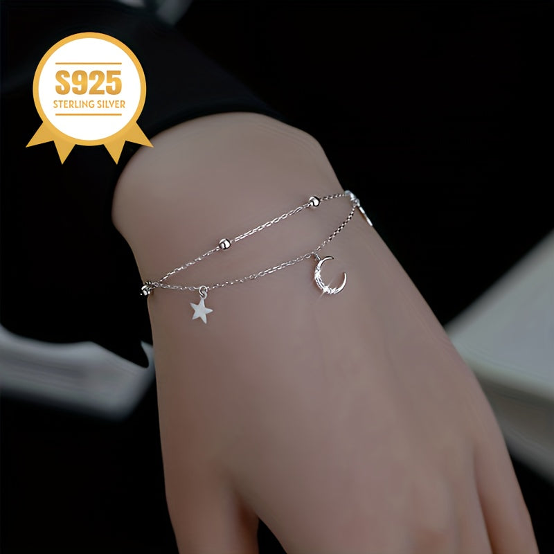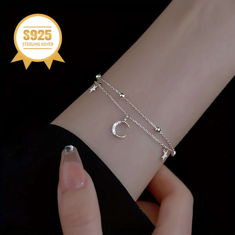 This double layer bracelet is a delightful addition to your jewelry collection. With a low allergy design, it is perfect for sensitive skin. The sweet star and moon charms add a fresh, forest-inspired look that exudes a light and elegant temperament. Makes a great gift for mothers.