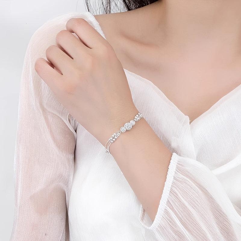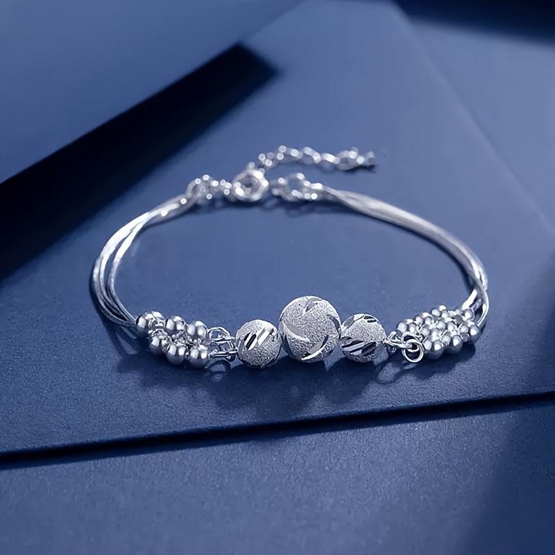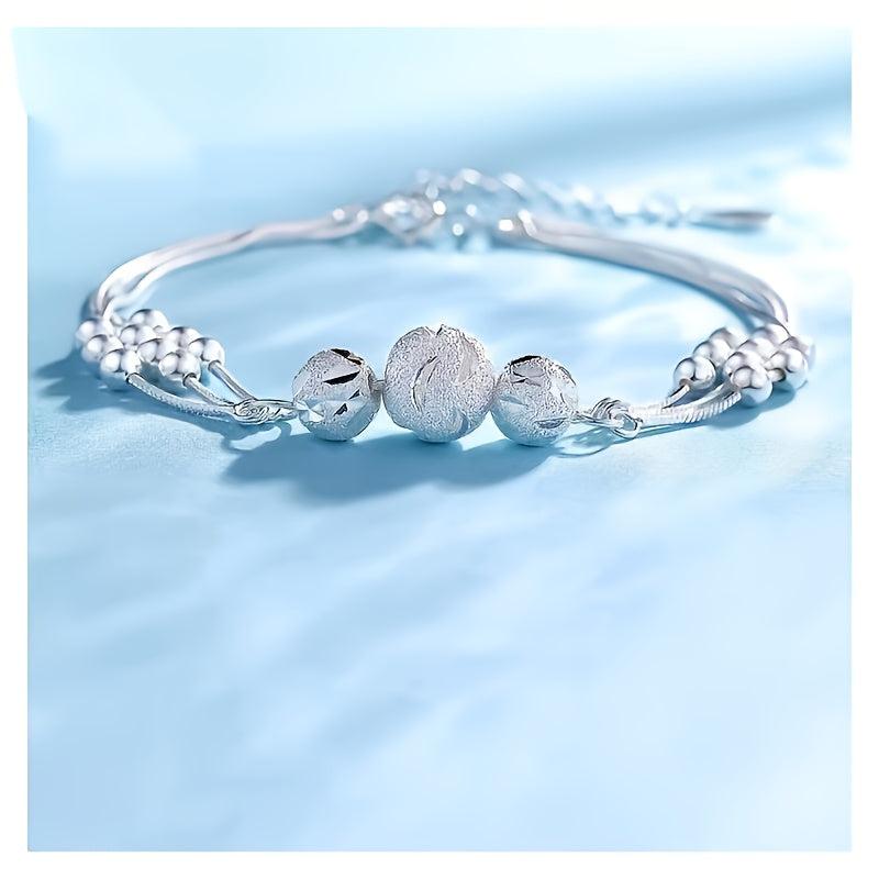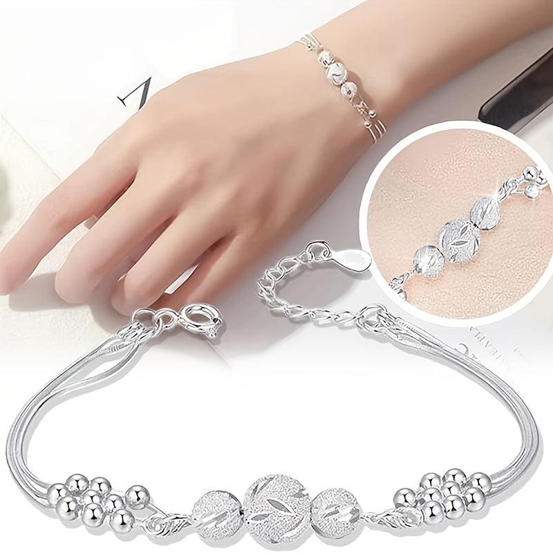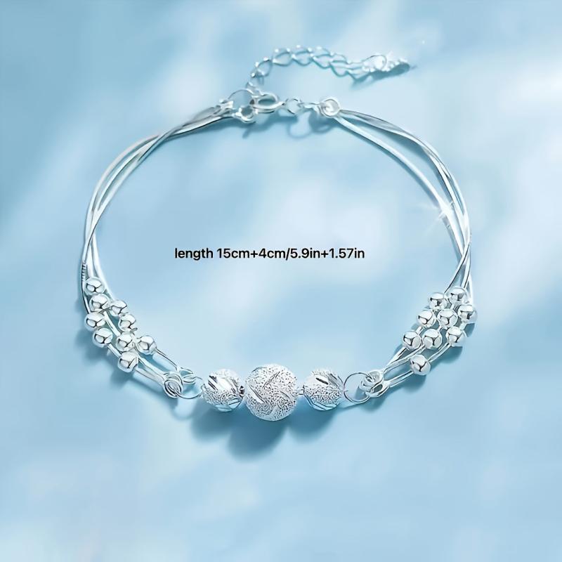 Embrace the Three Lives and Three Worlds with this stunning bracelet featuring layered beads. Made of silver plated copper, this unique piece will bring a touch of elegance to any outfit.