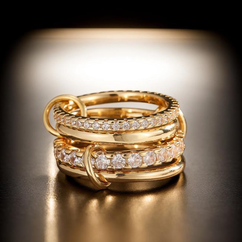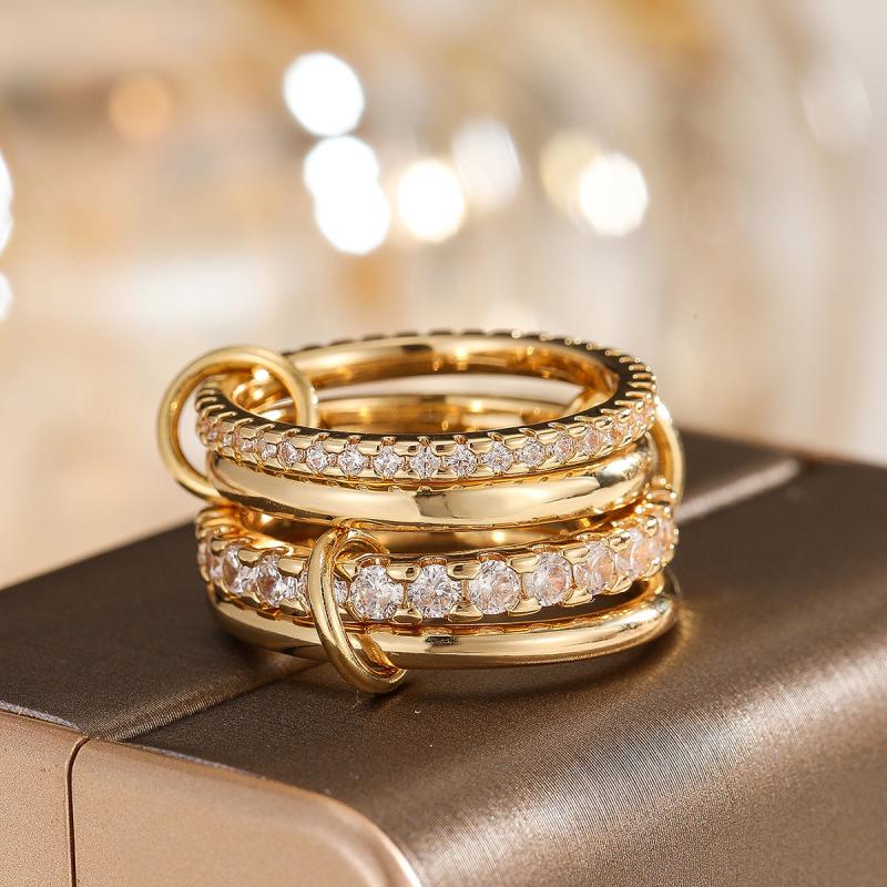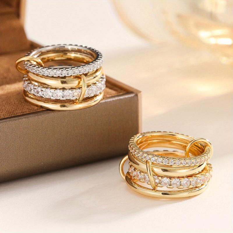 This stackable bracelet features four golden tone rings with synthetic cubic zirconia, suitable for everyday wear or parties. Makes a perfect gift for birthdays and anniversaries.