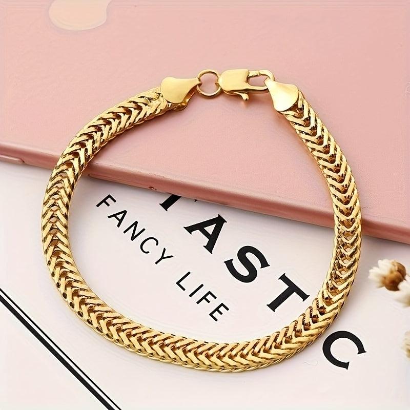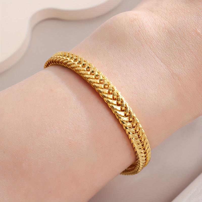 Add a touch of elegance to your outfit with this versatile fox tail bracelet. Perfect for parties and vacations, this golden tone bracelet features an intricate twist design that will elevate your look.