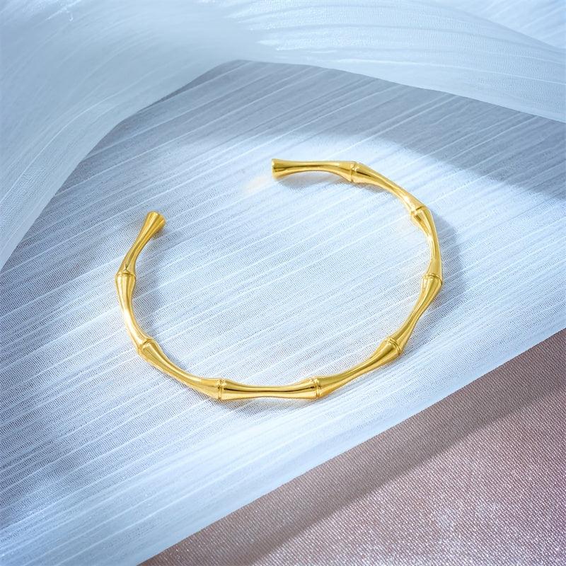 This elegant bamboo bracelet features a polished golden finish, making it versatile for both casual attire and gift giving year-round.