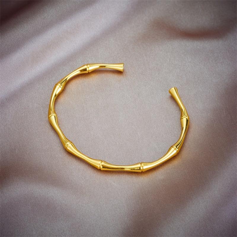 French Inspired Golden Bamboo Bracelet for Women Minimalist