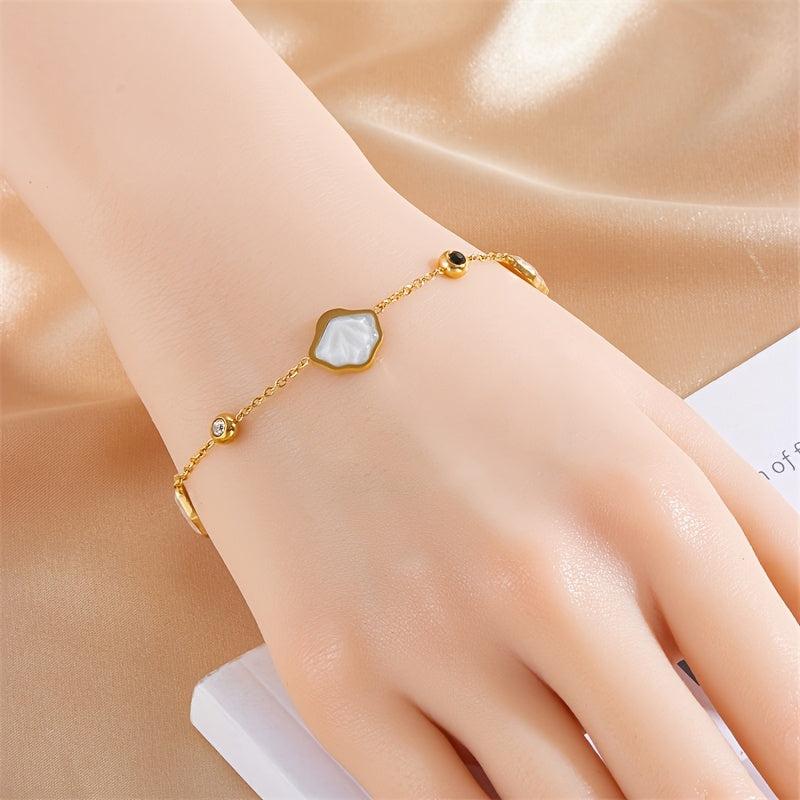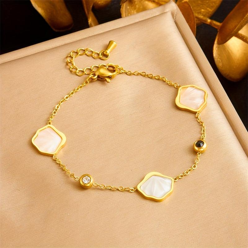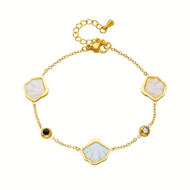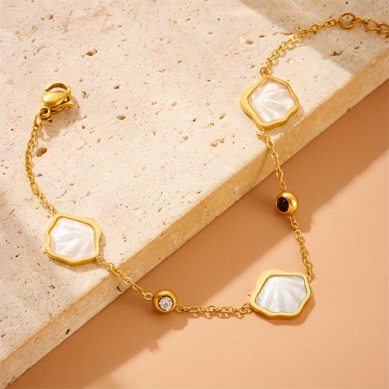 Add a touch of French-inspired style to your casual attire with this stainless steel bracelet featuring rhinestone shell pendants. It's also a great gift idea for loved ones.