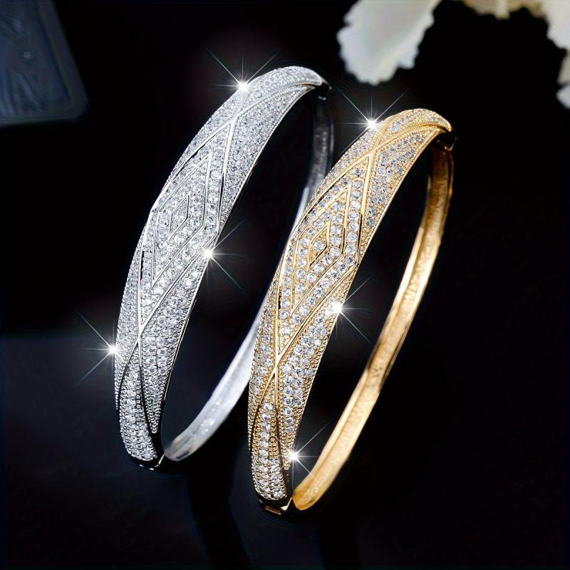 Elegant bracelet featuring synthetic zirconia with a light temperament and high-end style. Adjustable opening for perfect fit.