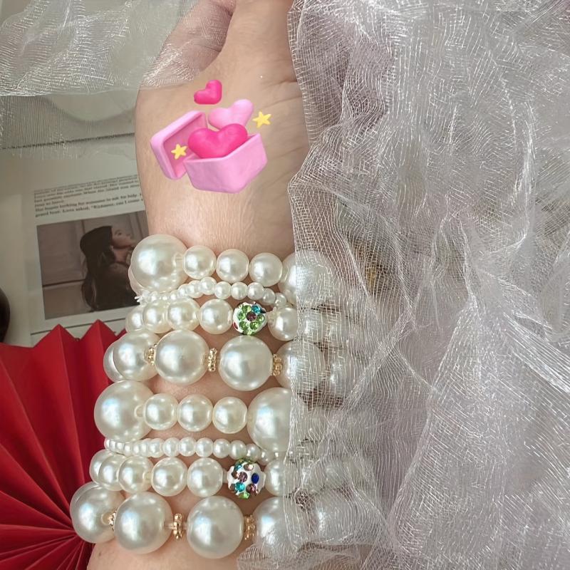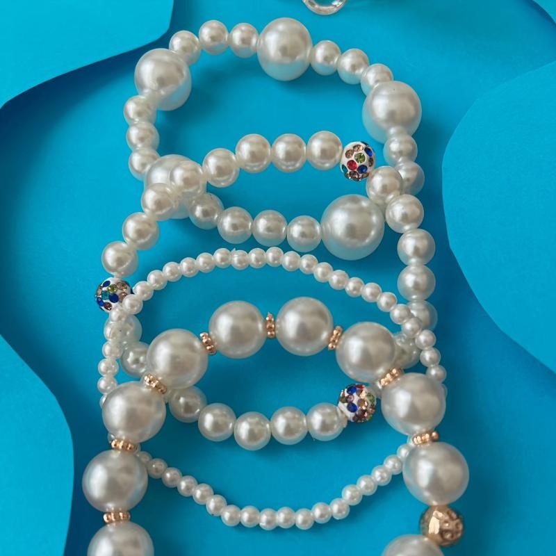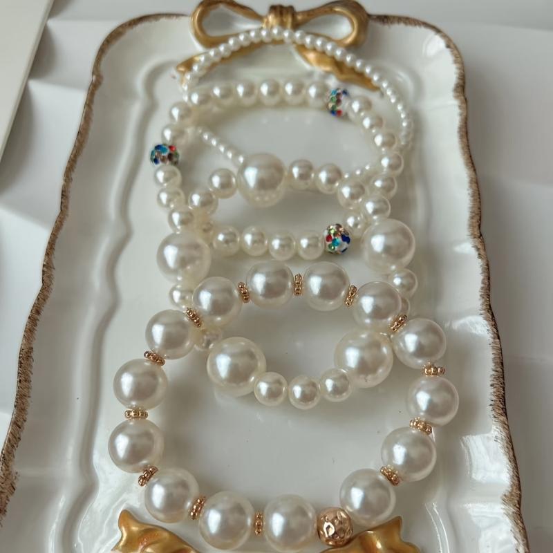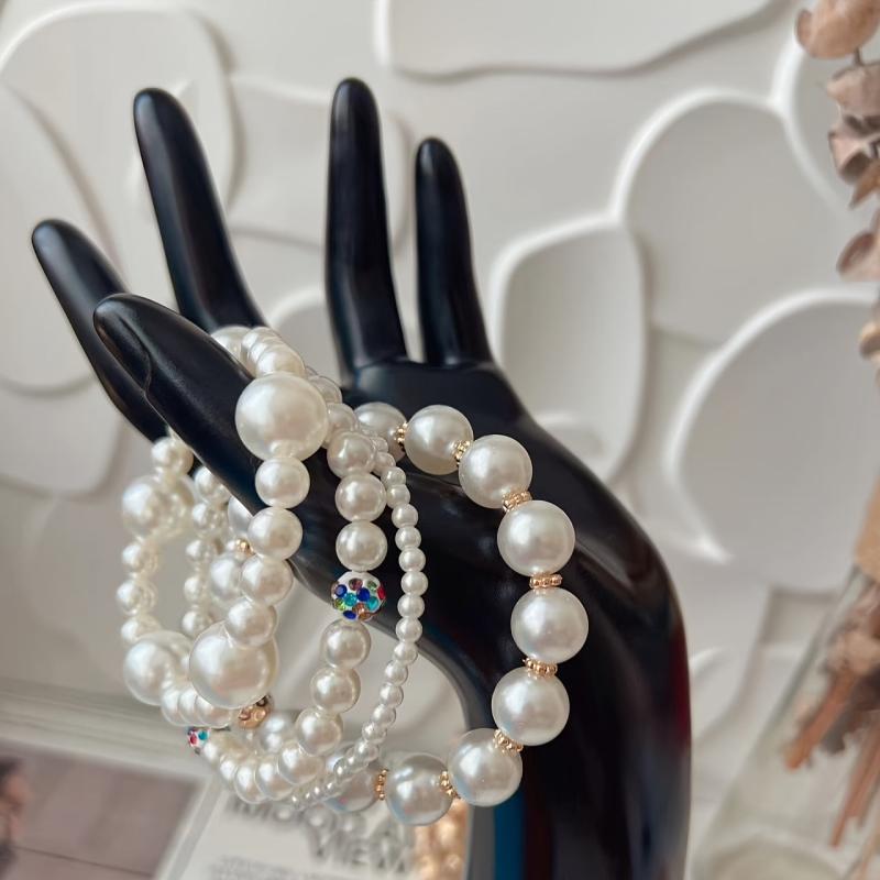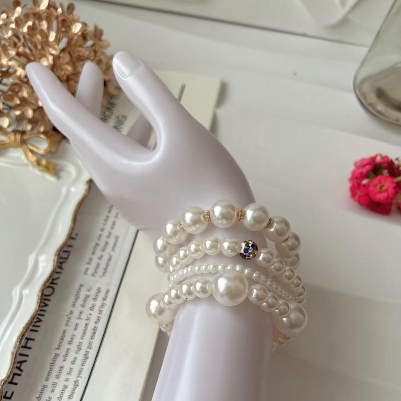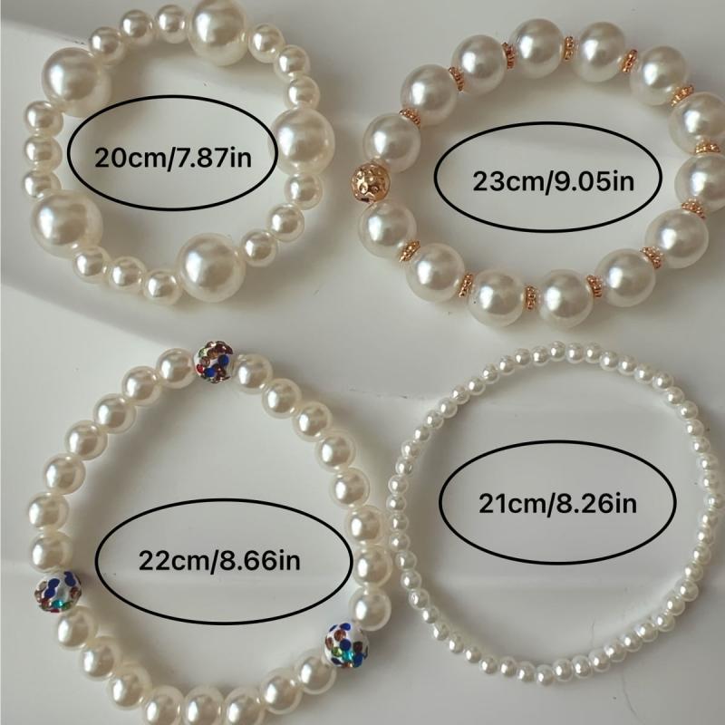 Elegant four-piece set of French artificial pearl bracelets that are perfect for Mother's Day, banquets, parties, or daily wear.