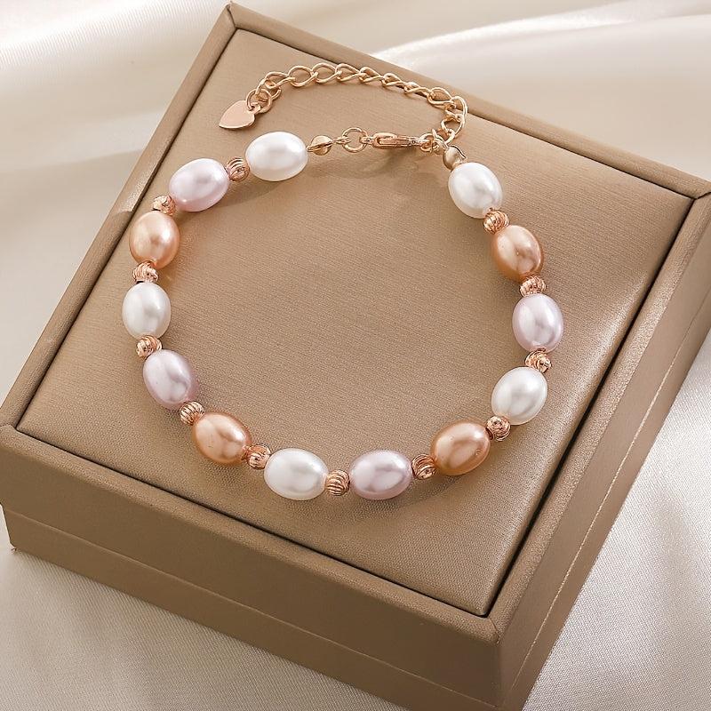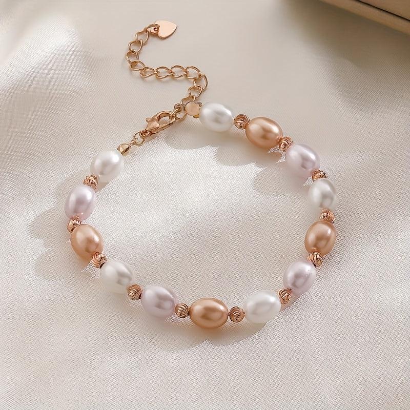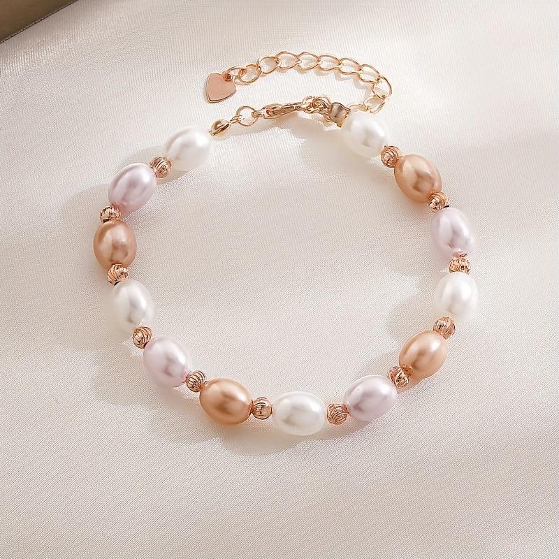 Elegant and timeless French pearl bracelet with delicate rose golden accents. Handcrafted for women who appreciate quality and style.