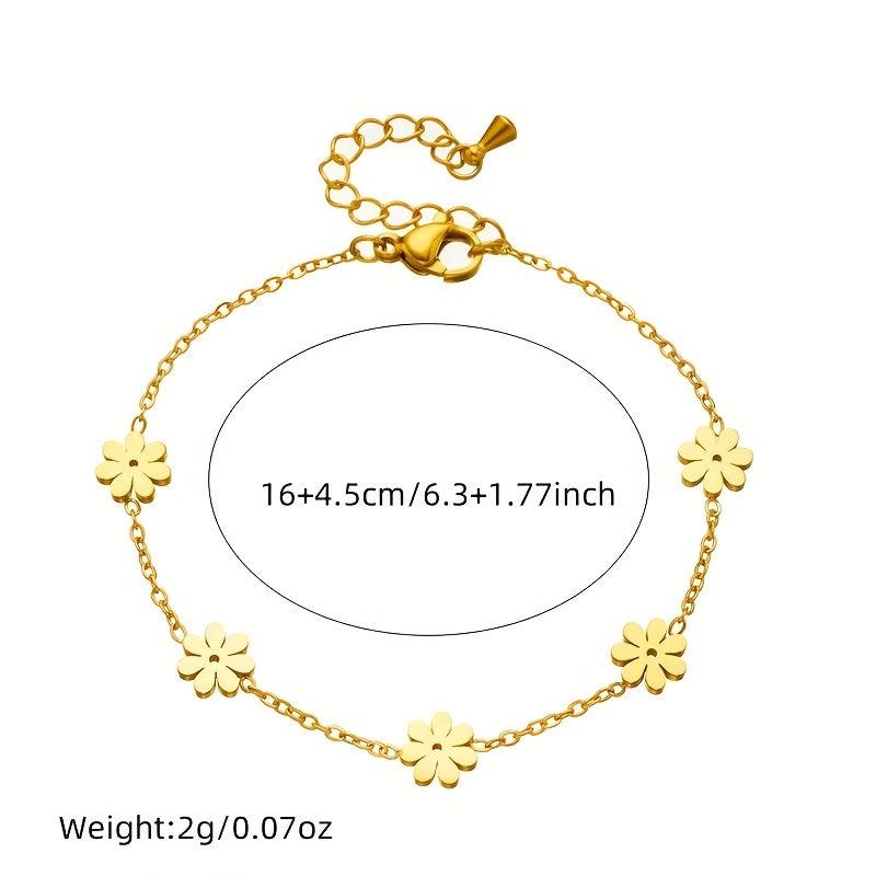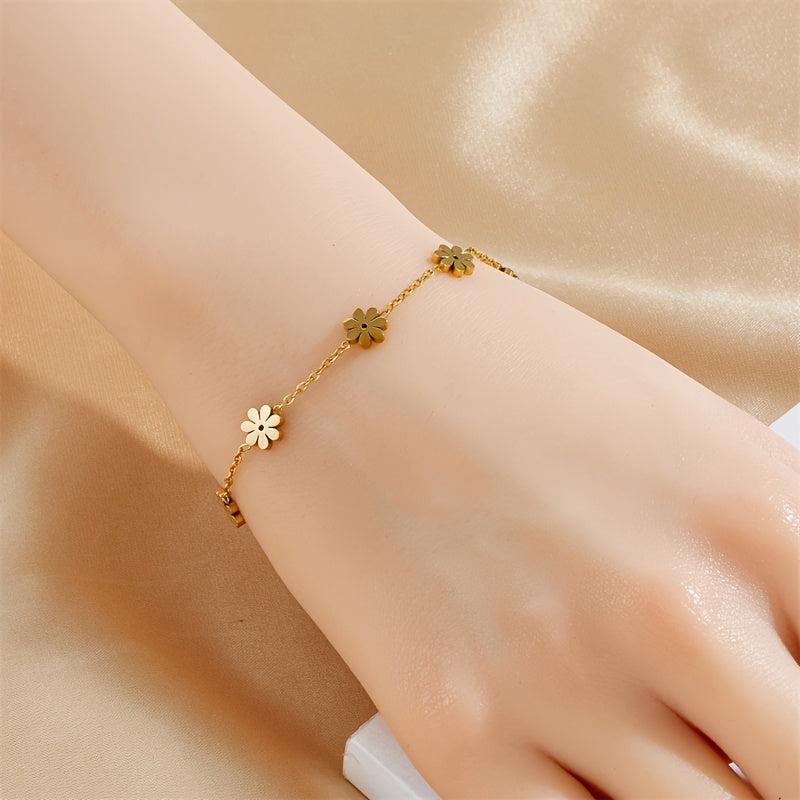 Elegant and versatile bracelet crafted from high-quality stainless steel with a golden flower design, perfect for daily wear or special party occasions.