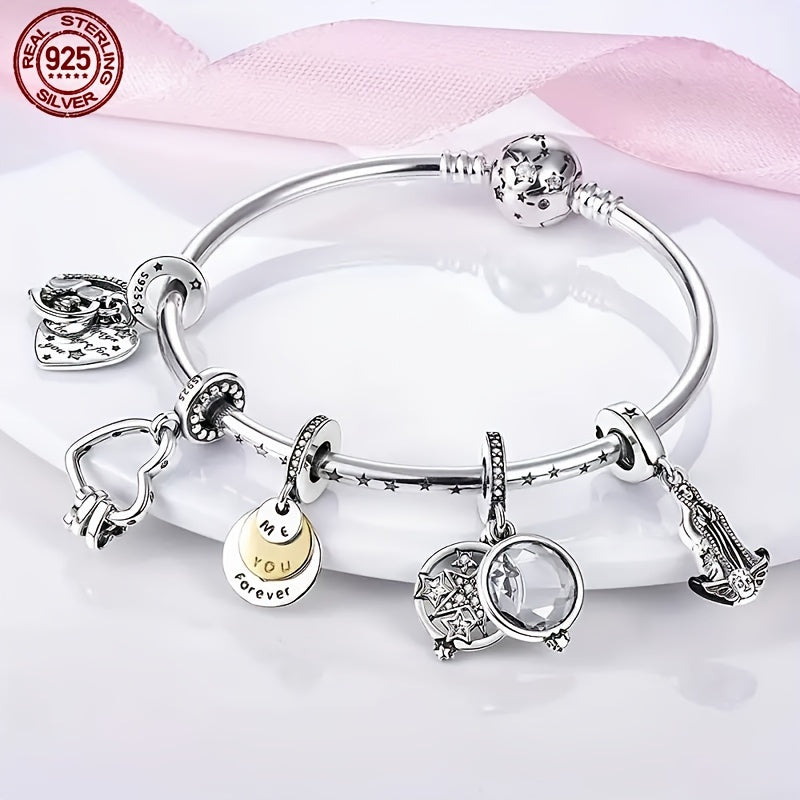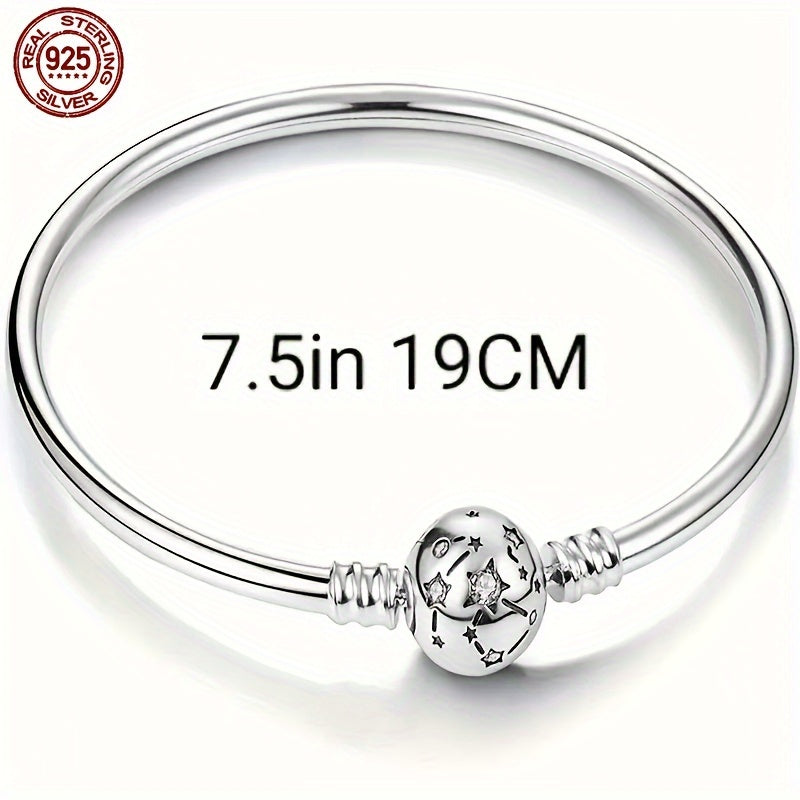 Create your own celestial accessory with this 925 sterling silver charm bracelet featuring intricate engravings of stars and planets. Ideal for DIY jewelry projects.