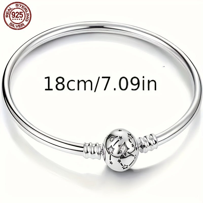 Galaxy Star Charm Bracelet 925 Silver Engraved Planets DIY Jewelry Accessory