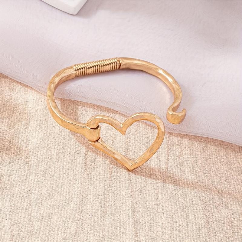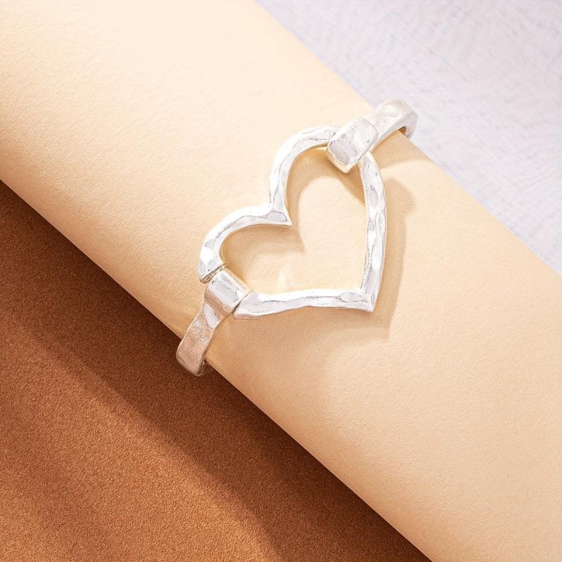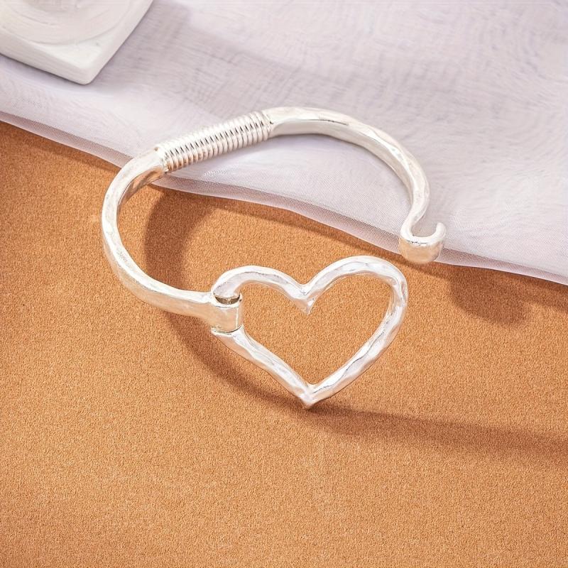 This stylish open cuff bracelet features a geometric heart design, crafted from durable zinc alloy. Ideal for daily and vacation wear, this versatile accessory is suitable for all seasons.