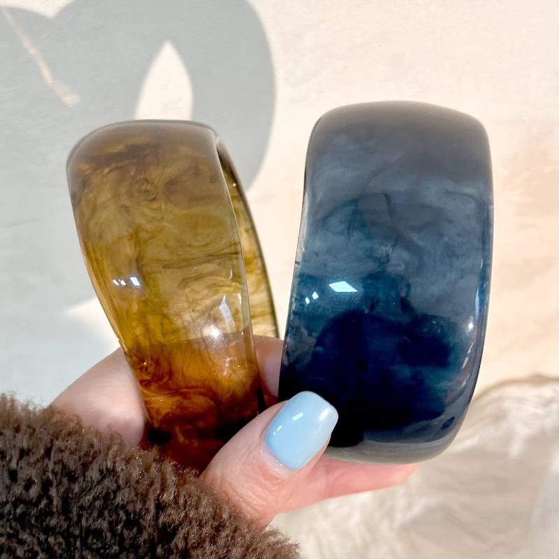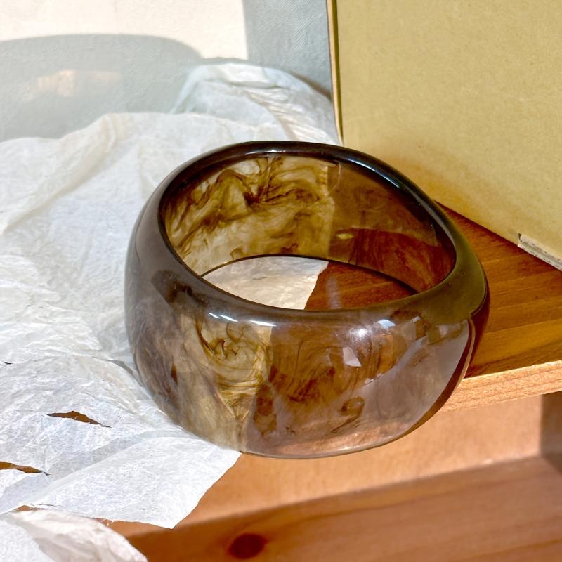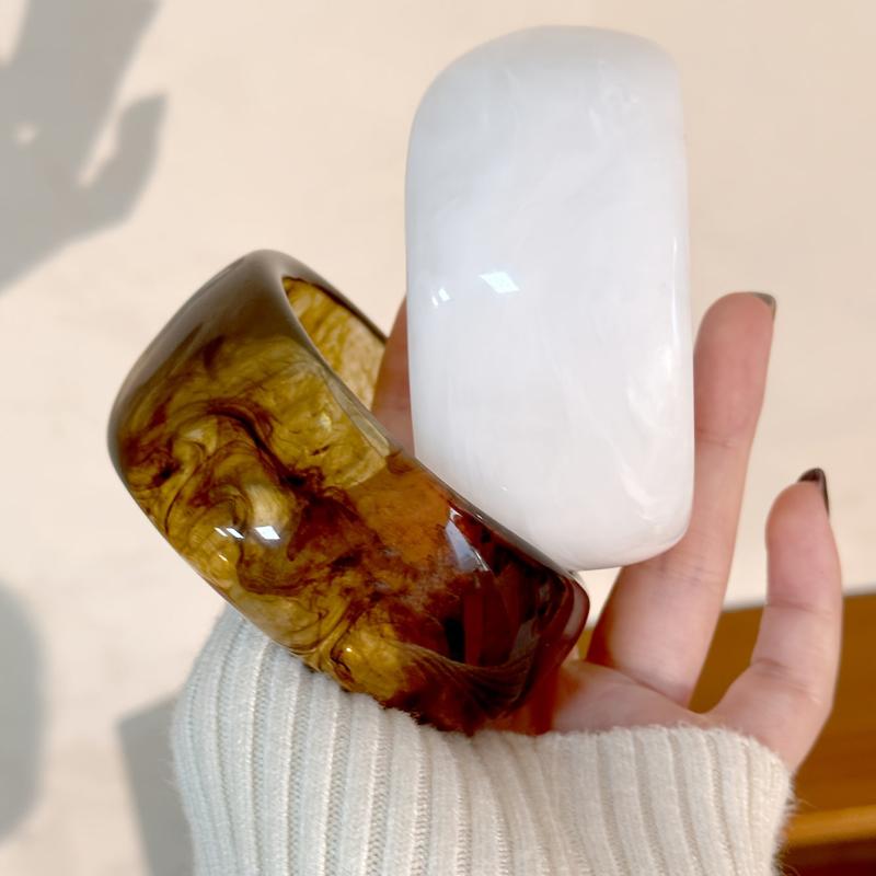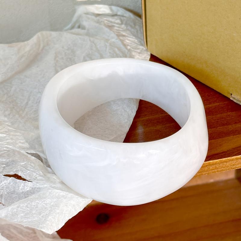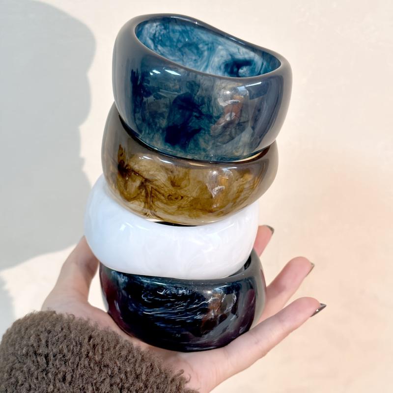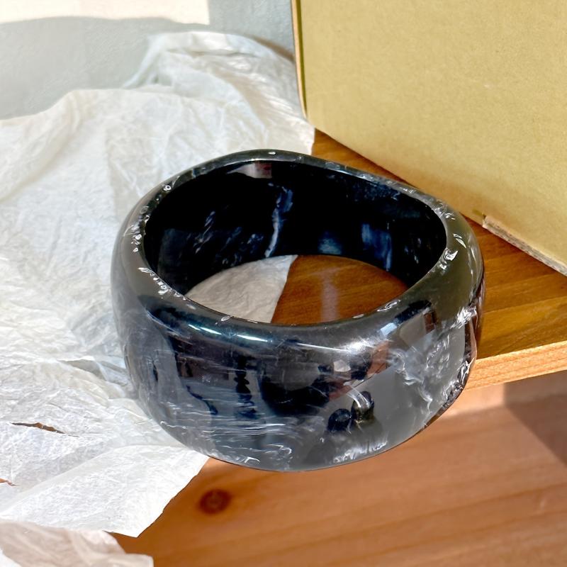 This unique bracelet features an irregular gradient design from dark to light gray with a smooth glossy finish. It is perfect for casual attire or parties, adding a touch of style to your outfit.