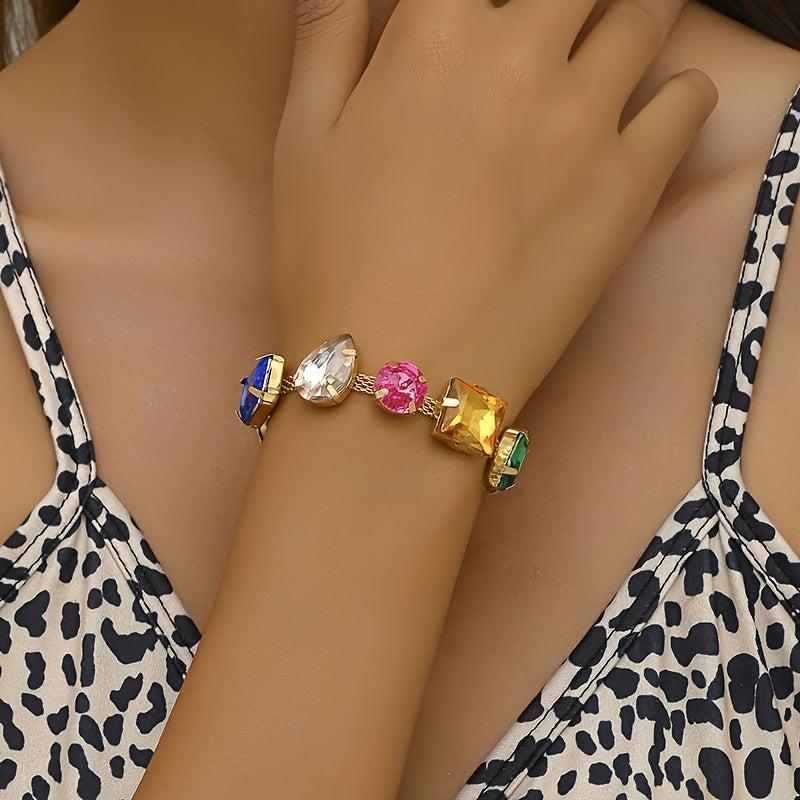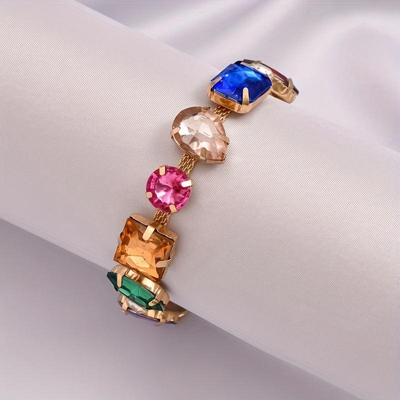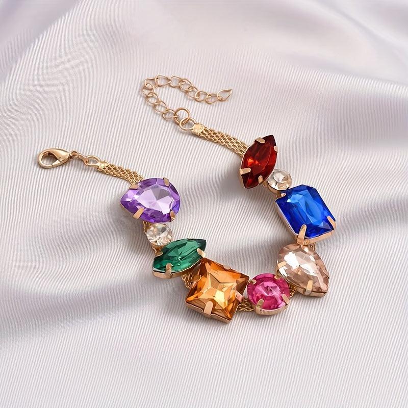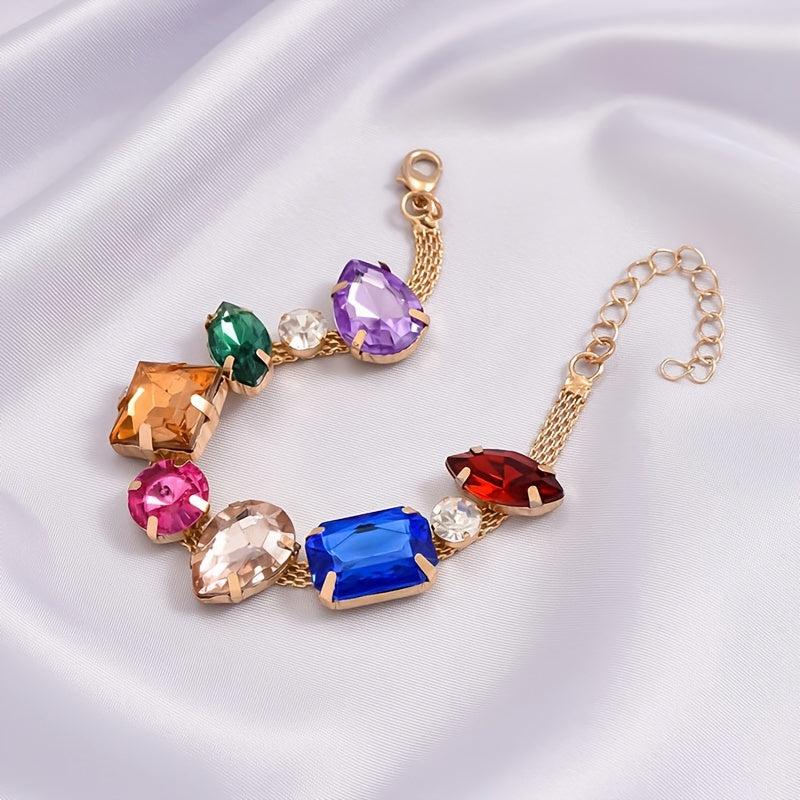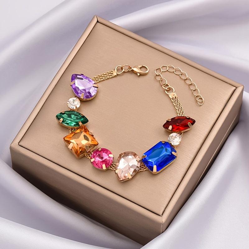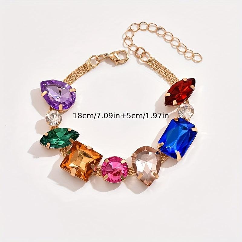 Adorn your wrist with this stunning geometric rhinestone beaded chain bracelet featuring random arrangement of rhinestones.