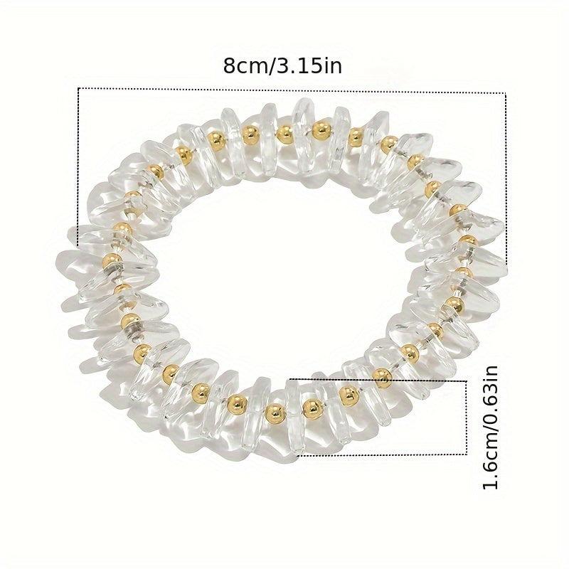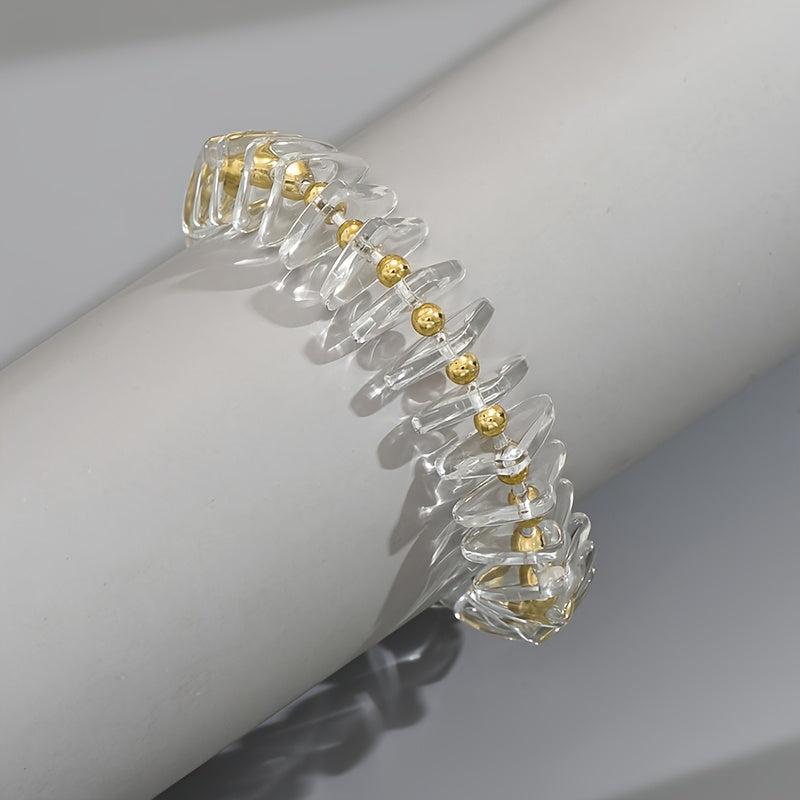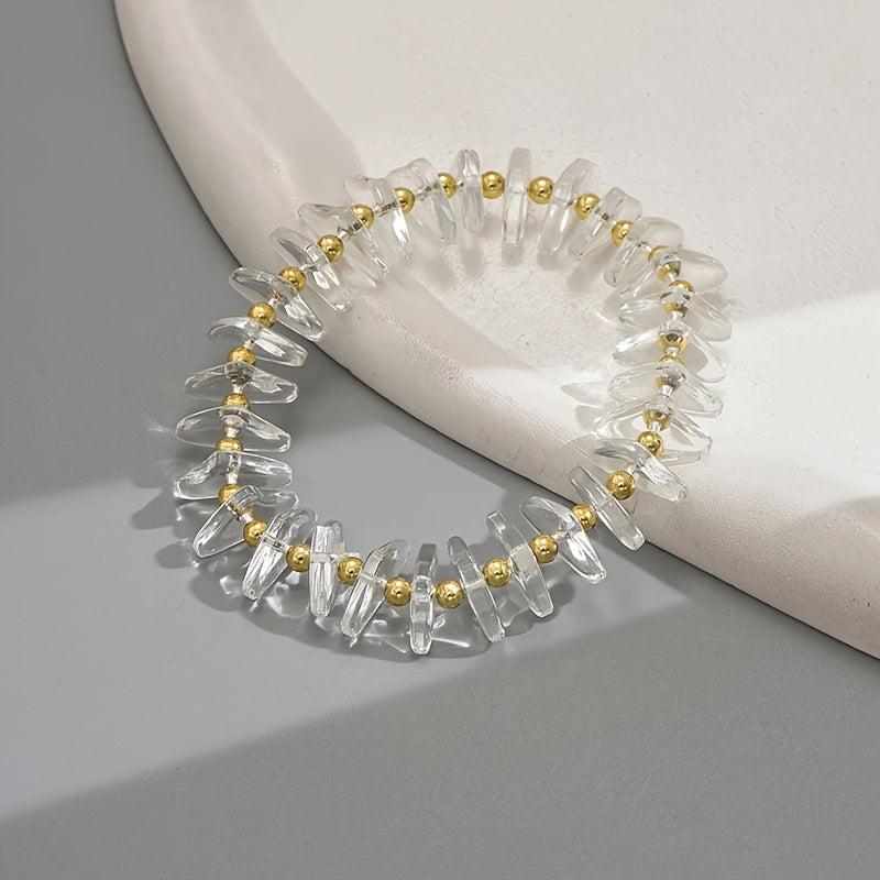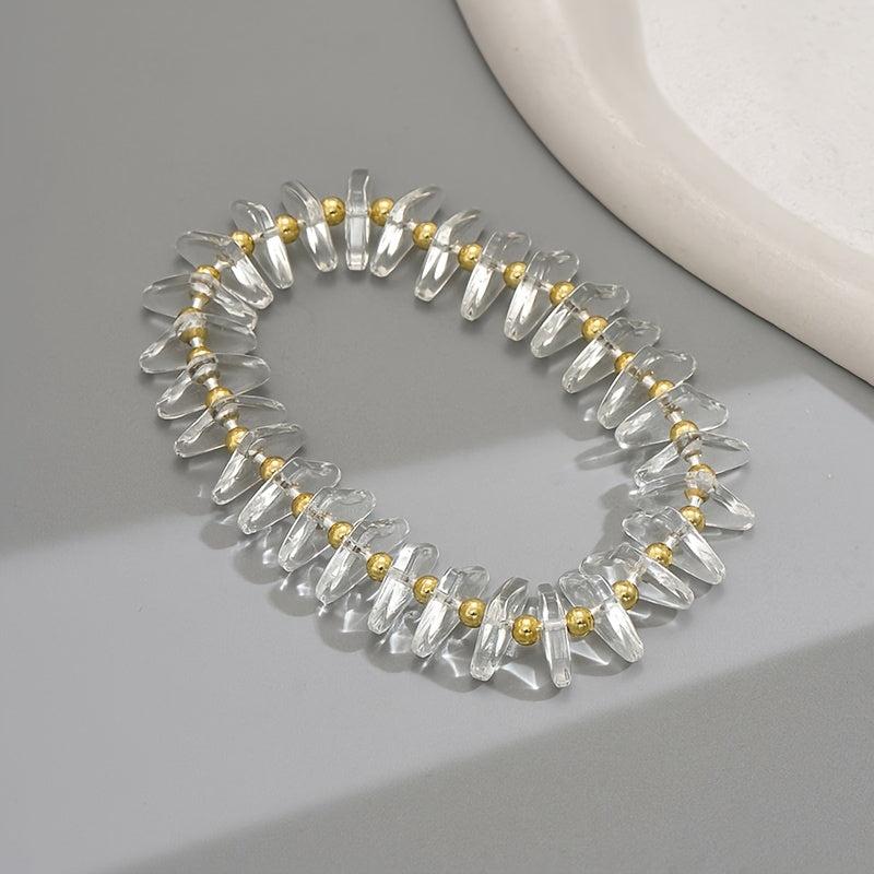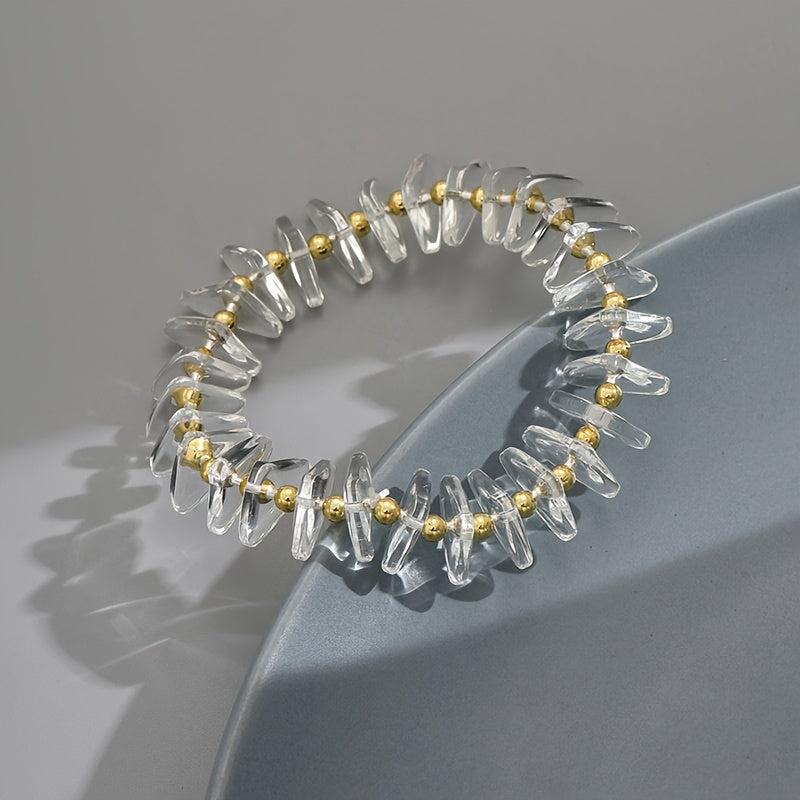 This stylish bracelet features clear glass with golden accents, making it a versatile accessory for casual or party wear.
