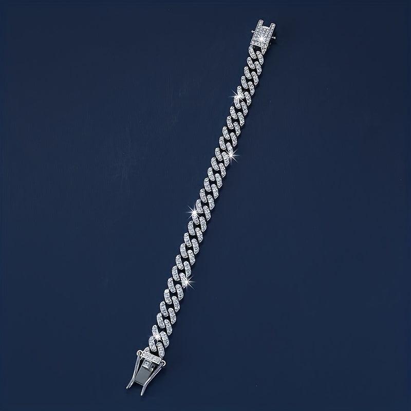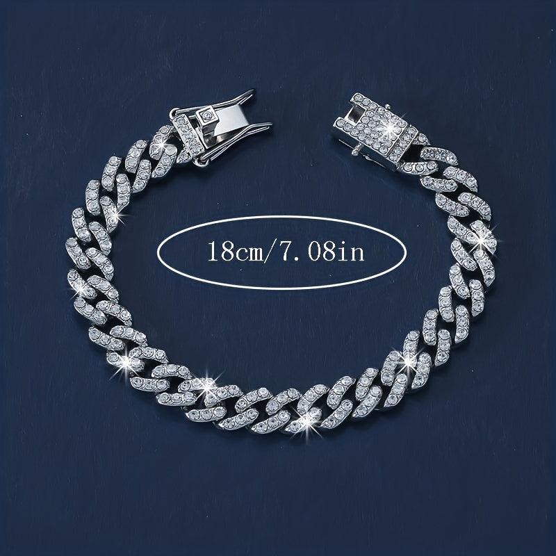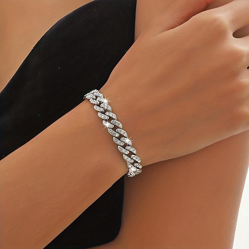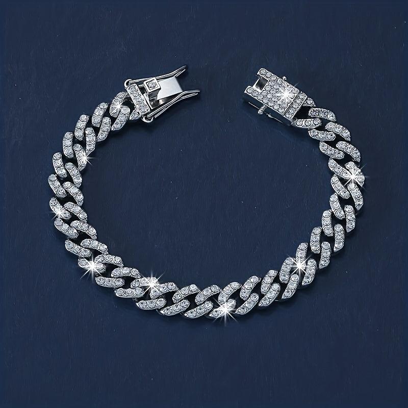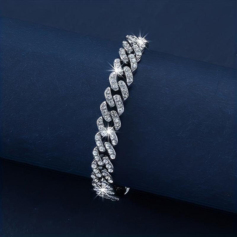 This sparkling Cuban chain bracelet is the perfect punk accessory for both women and men. It features glittering rhinestones that add a touch of glam to any outfit.