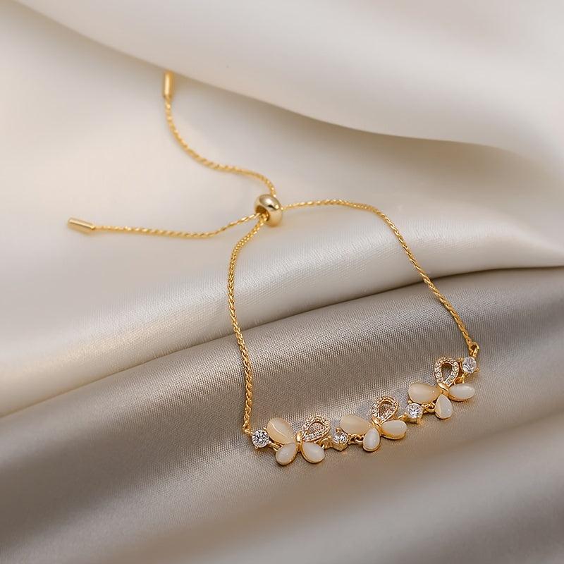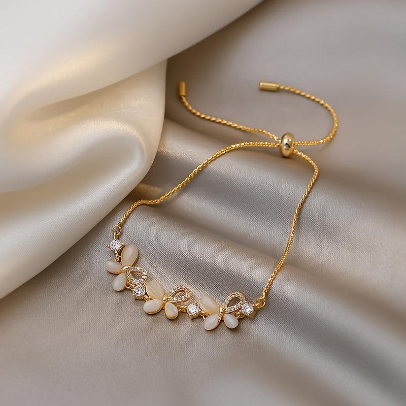 This stunning bracelet features glittering zirconia, cat eye stone, and a charming butterfly charm. It makes a perfect hand jewelry gift for women and girls.