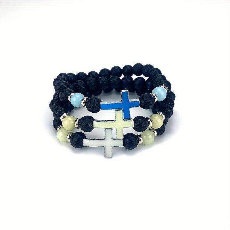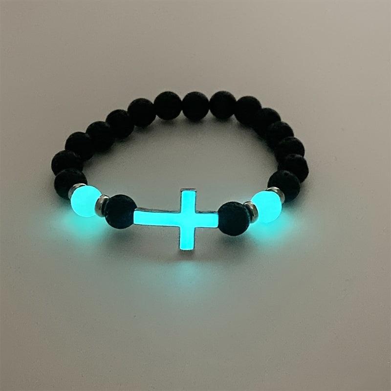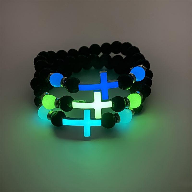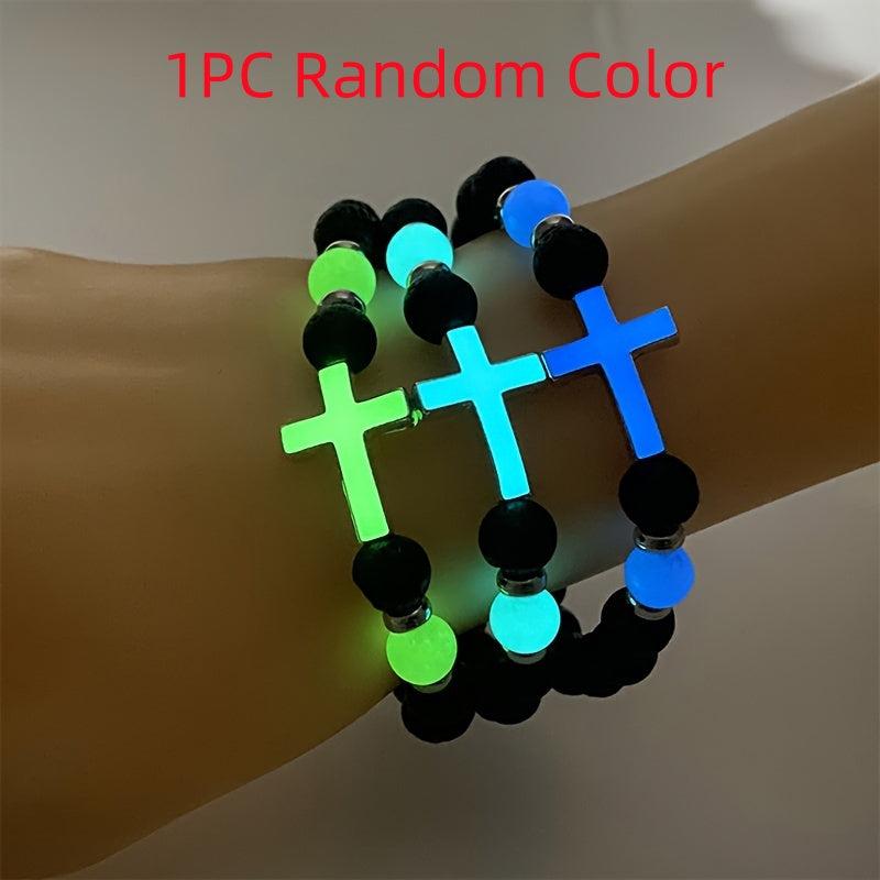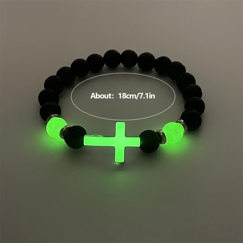 Glow in Dark Cross Wristband Set Fashionable Style Artificial Stone Casual Wear