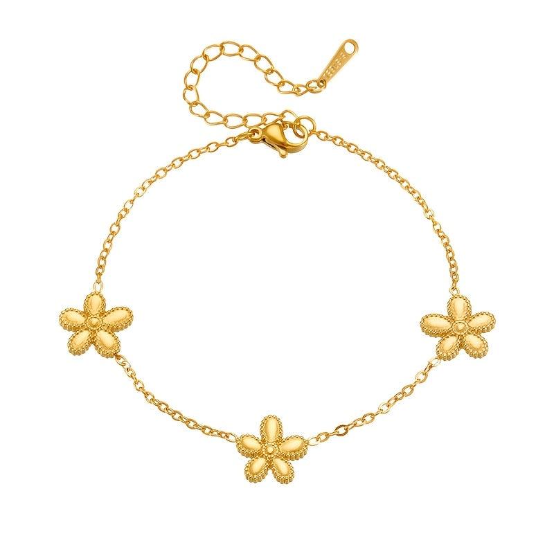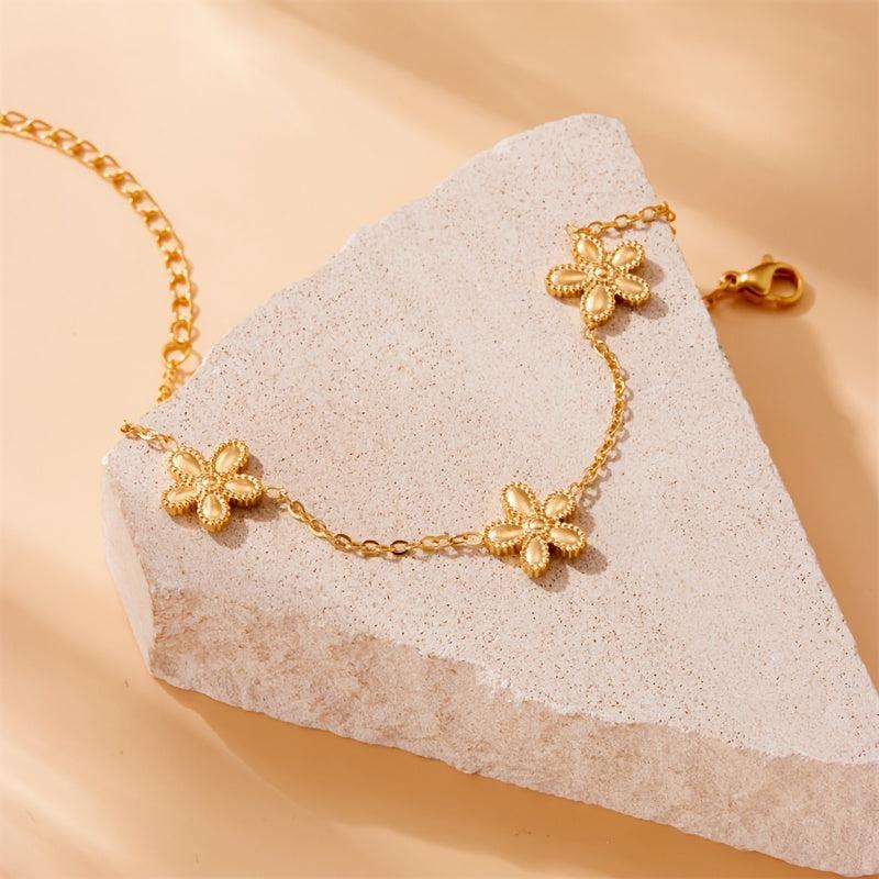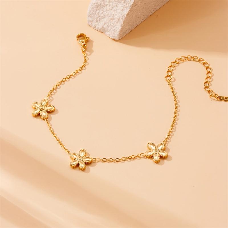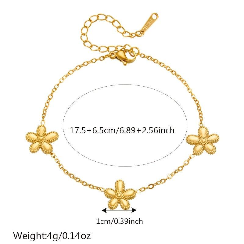 Gold Flower Bracelet for Women Adjustable Chain Link 3D Floral Everyday Wear