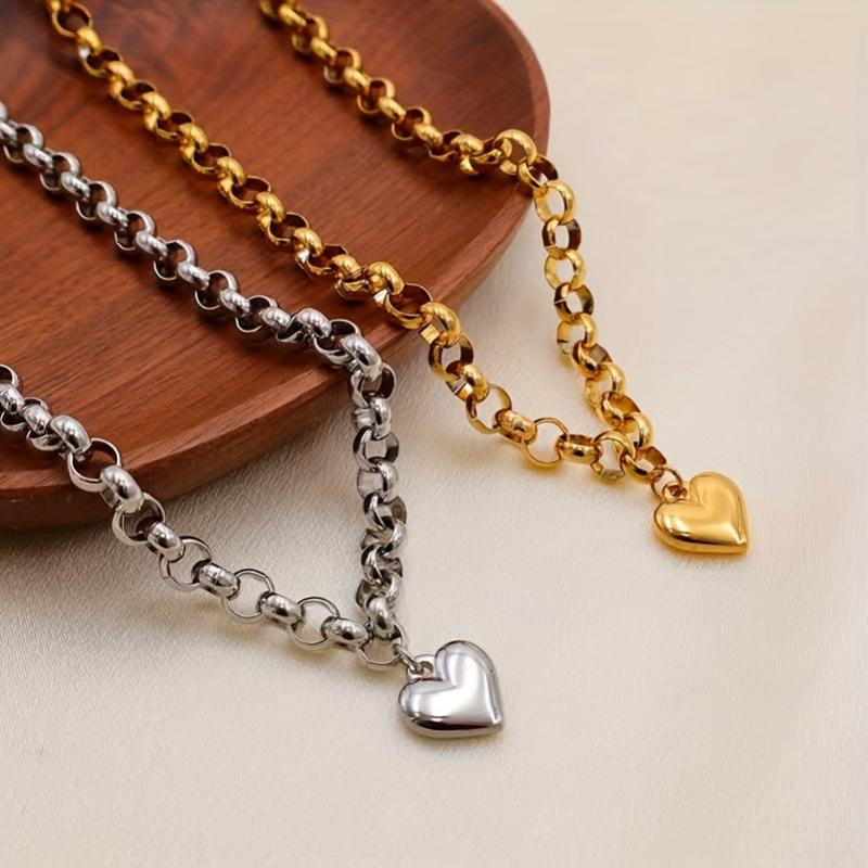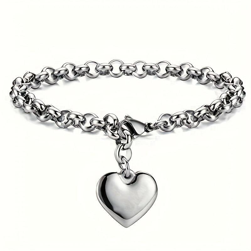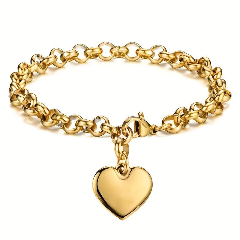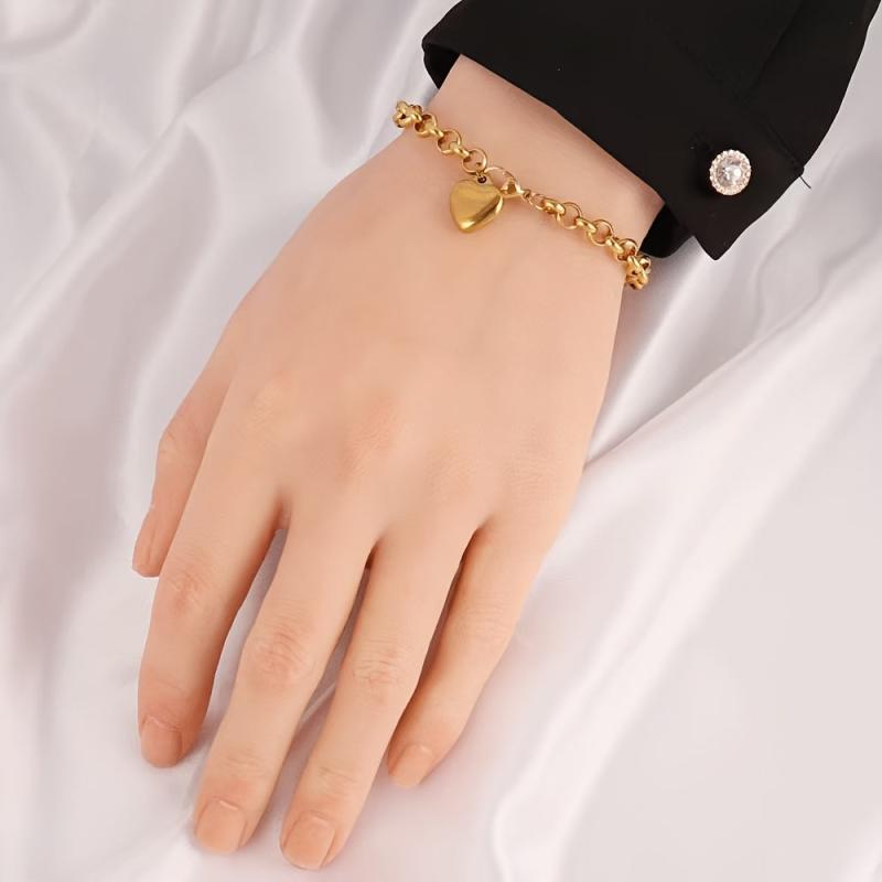 Elegant and stylish gold titanium bracelet with a heart pendant, perfect for fashionable women.