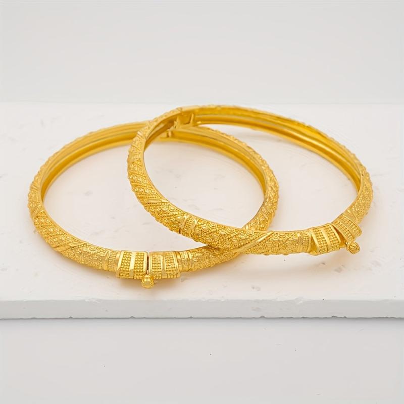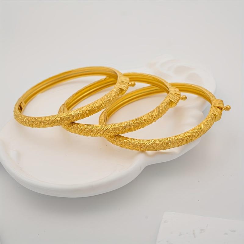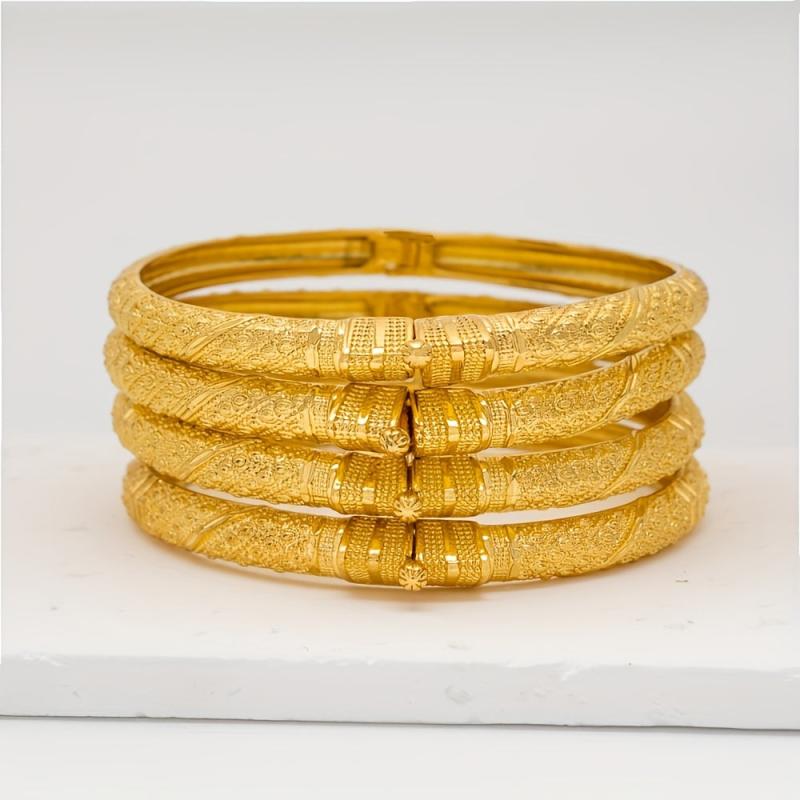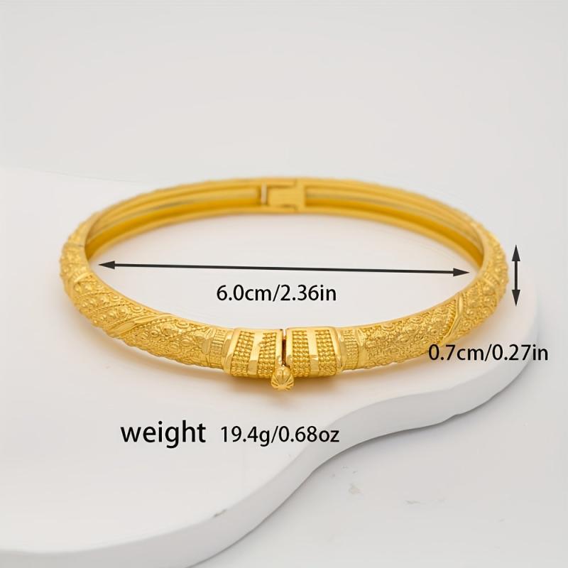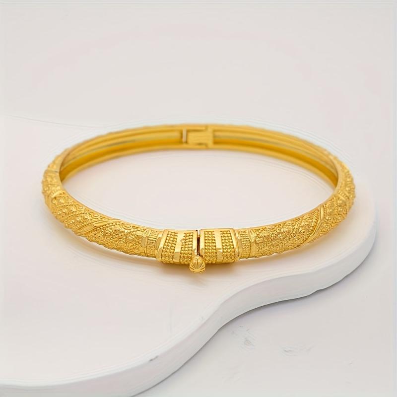Exquisite golden carved open bracelet that radiates glory, ideal as a gift from Saudi Arabia for women's hand ornament.
