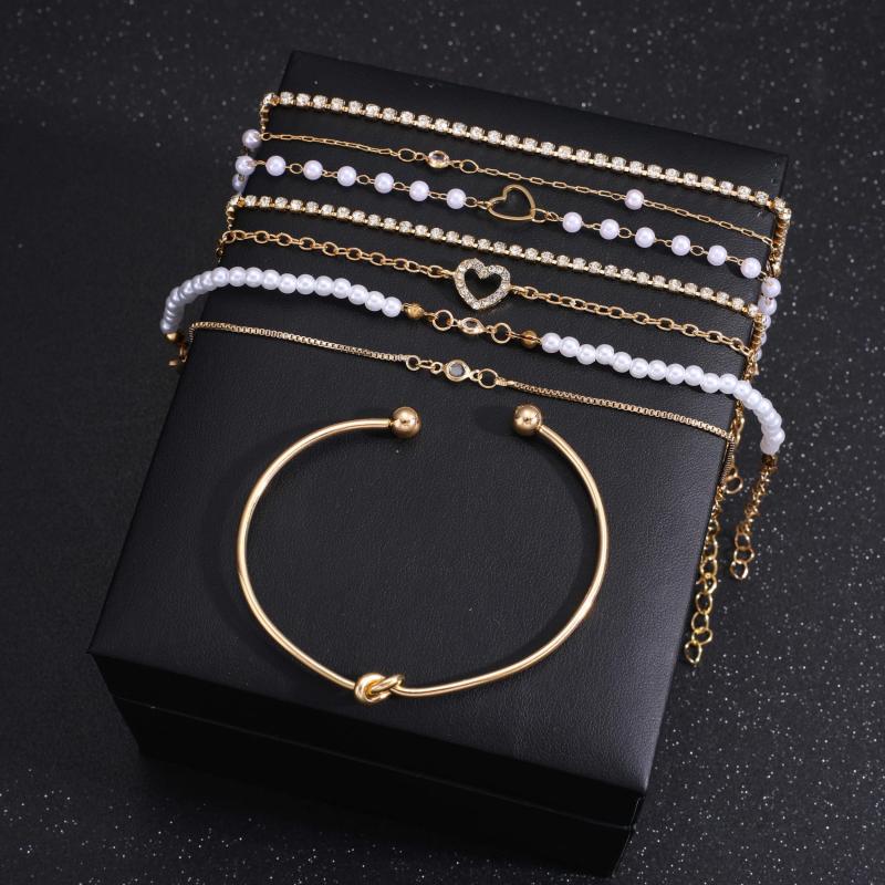 Elevate your style with this 8pcs jewelry set featuring stylish golden faux heart open bangles. Perfect for daily outings and party wear.