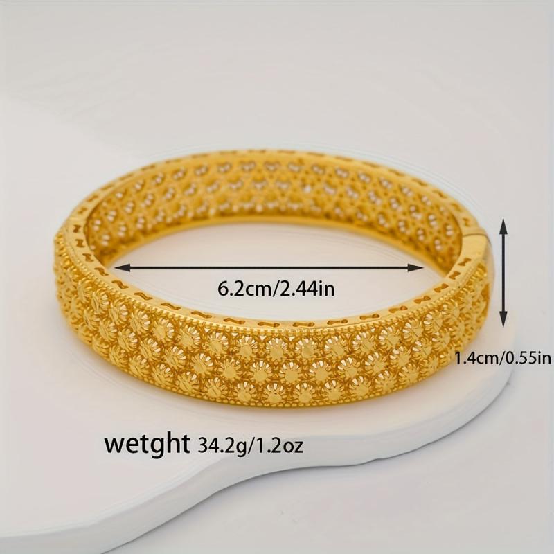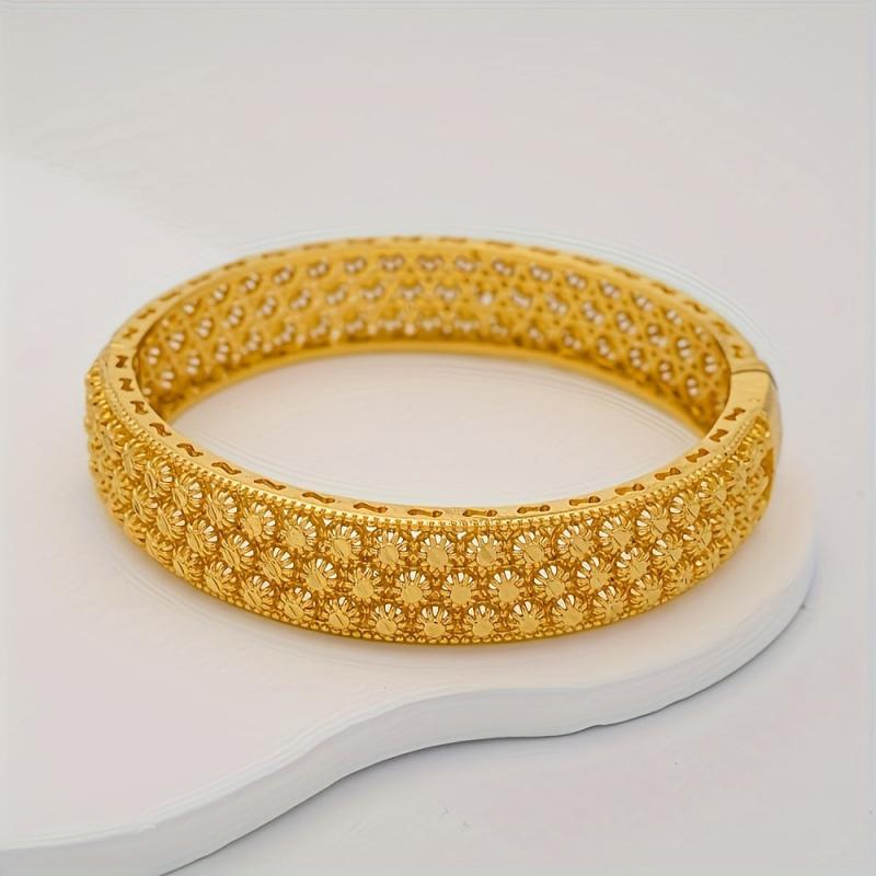 Add a touch of elegance to your outfit with this golden open cuff bracelet adorned with intricate floral patterns. Crafted from high-quality copper, this bracelet is perfect for daily wear or gifting. The adjustable fit makes it suitable for all occasions.